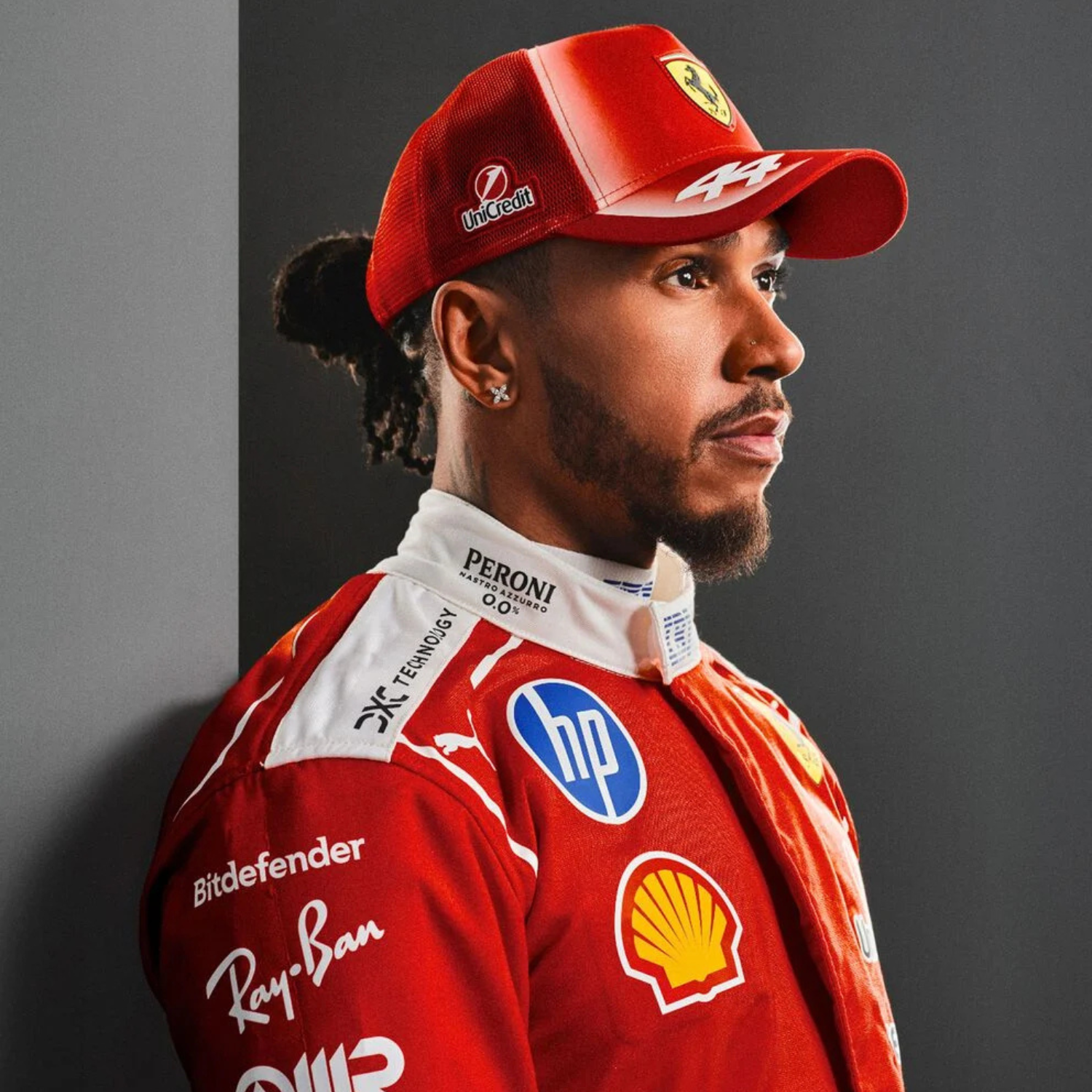 The Lewis Hamilton cap from the Replica 2026 collection combines racing style and Ferrari identity. The Scuderia red background with white accents, the central Ferrari Scudetto logo and the white Puma logo on the peak define the iconic design, enriched with the driver's car number. A unique accessory, created to bring the energy of Formula 1 beyond the circuit.