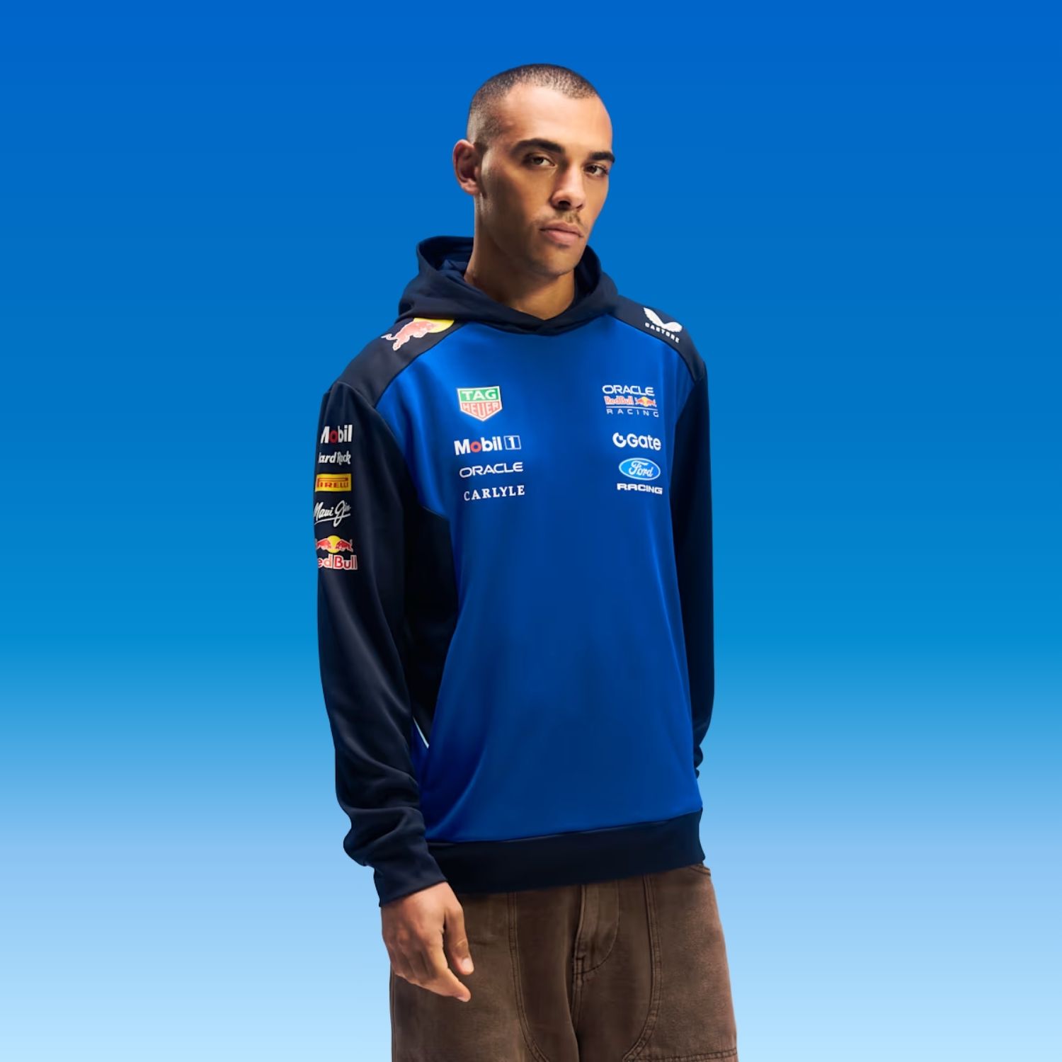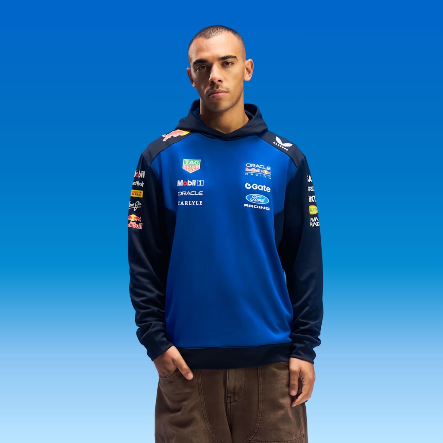 - Oracle Red Bull Racing, Castore and partner logos on the chest, back and sleeves