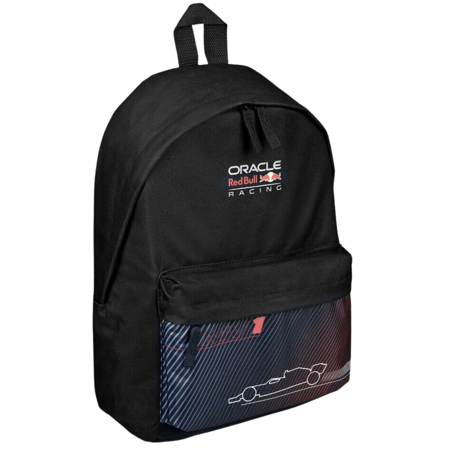 The durable Red Bull Racing Max Verstappen MV1 backpack offers plenty of space in the main compartment with a two-way zipper and an additional front zipper pocket. Padded, adjustable shoulder straps and a padded back ensure comfortable carrying even during longer trips. All zippers are equipped with handles, thanks to which the backpack is easy to open and close. Discover the world of Undercover with the Red Bull Racing collection. Undercover is recognized as an expert in licensed school products. The products are regularly tested in internationally recognized research institutes, which guarantees exceptional quality and durability. Dimensions 40x27x12 cm, volume 13L, material 100% polyester.