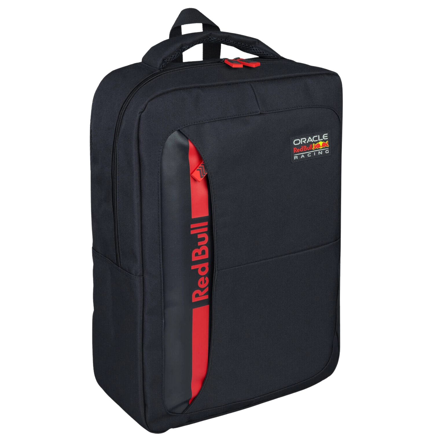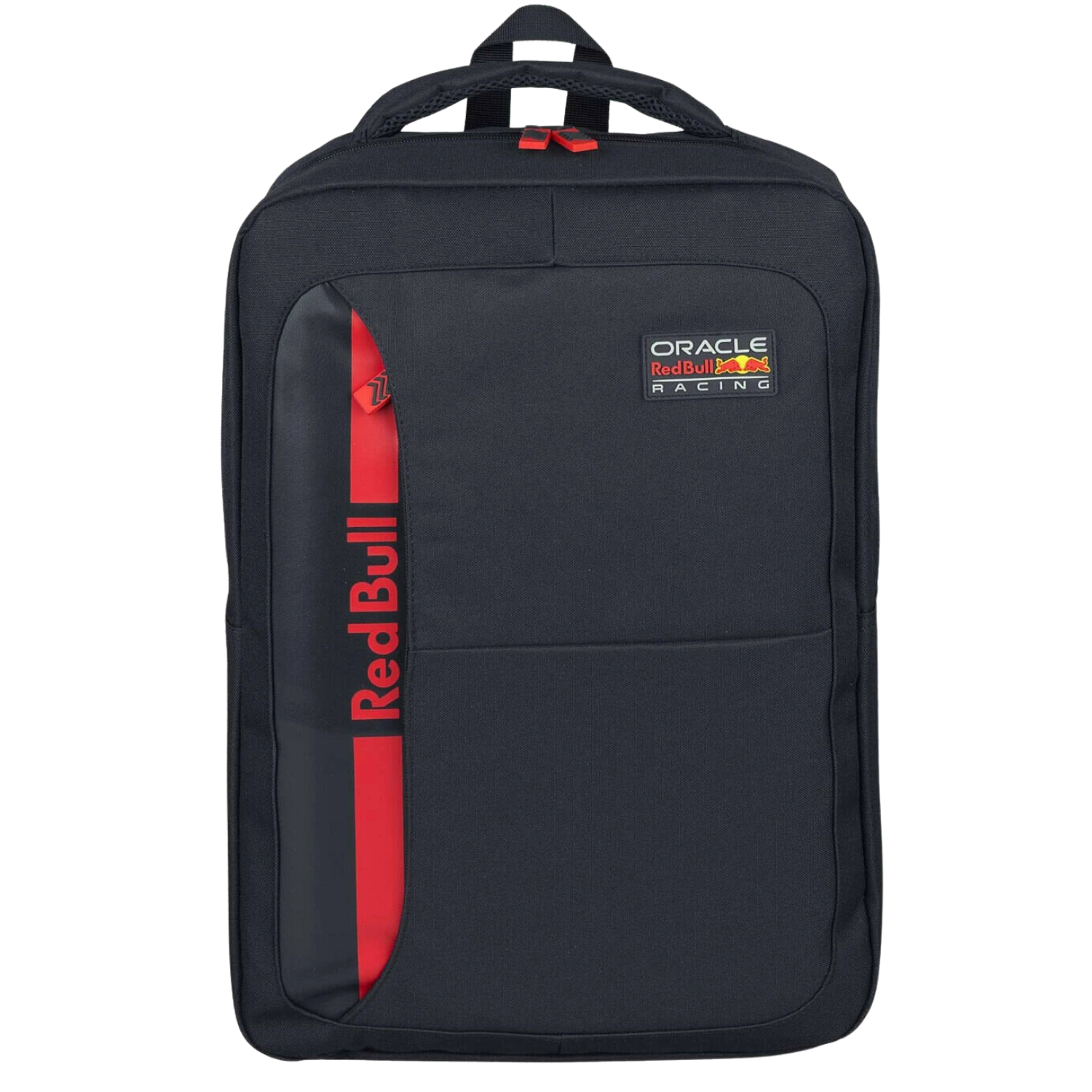 Tento všestranný batoh Red Bull Racing má priestranný hlavný priestor a samostatný integrovaný priestor na notebook, ktoré sú prístupné pomocou praktického obojsmerného zipsu. Ďalšie predné vrecko na zips poskytuje extra úložný priestor. Rukoväť na prenášanie a nastaviteľné, polstrované ramenné popruhy ponúkajú optimálne pohodlie pri nosení, zatiaľ čo polstrovaný chrbát poskytuje oporu počas dlhých ciest. Všetky zipsy majú gumené úchytky pre športový vzhľad a ikonické logo Red Bull s gumenou nášivkou na prednej strane dodáva batohu nádych elegancie.