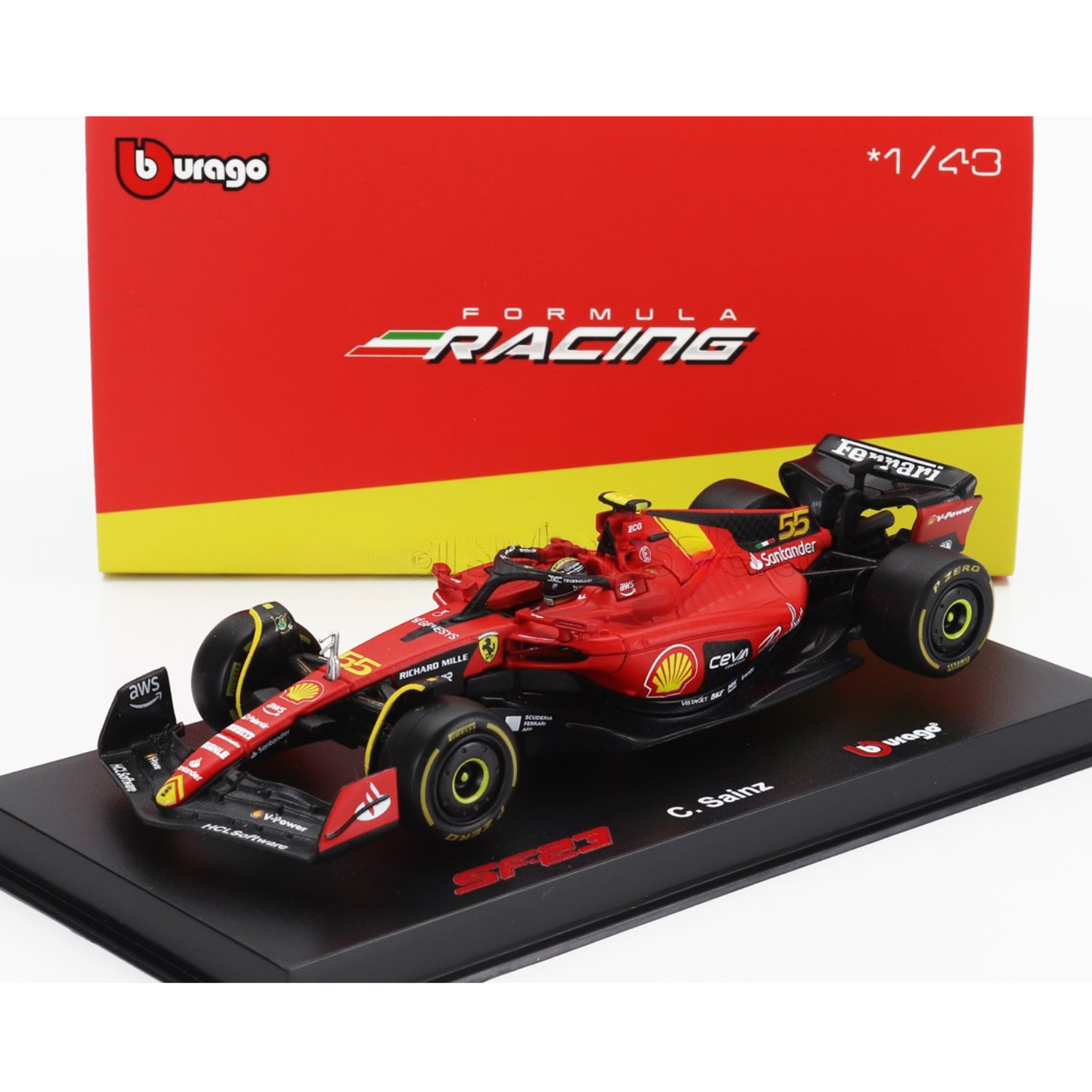 - Bburago Model Scuderia Ferrari F1 SF-23 Sainz Monza 1/43