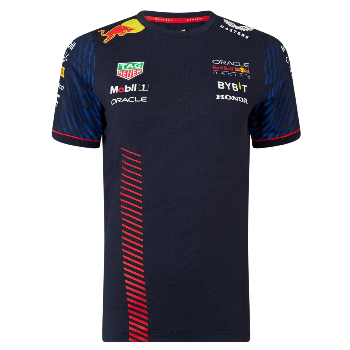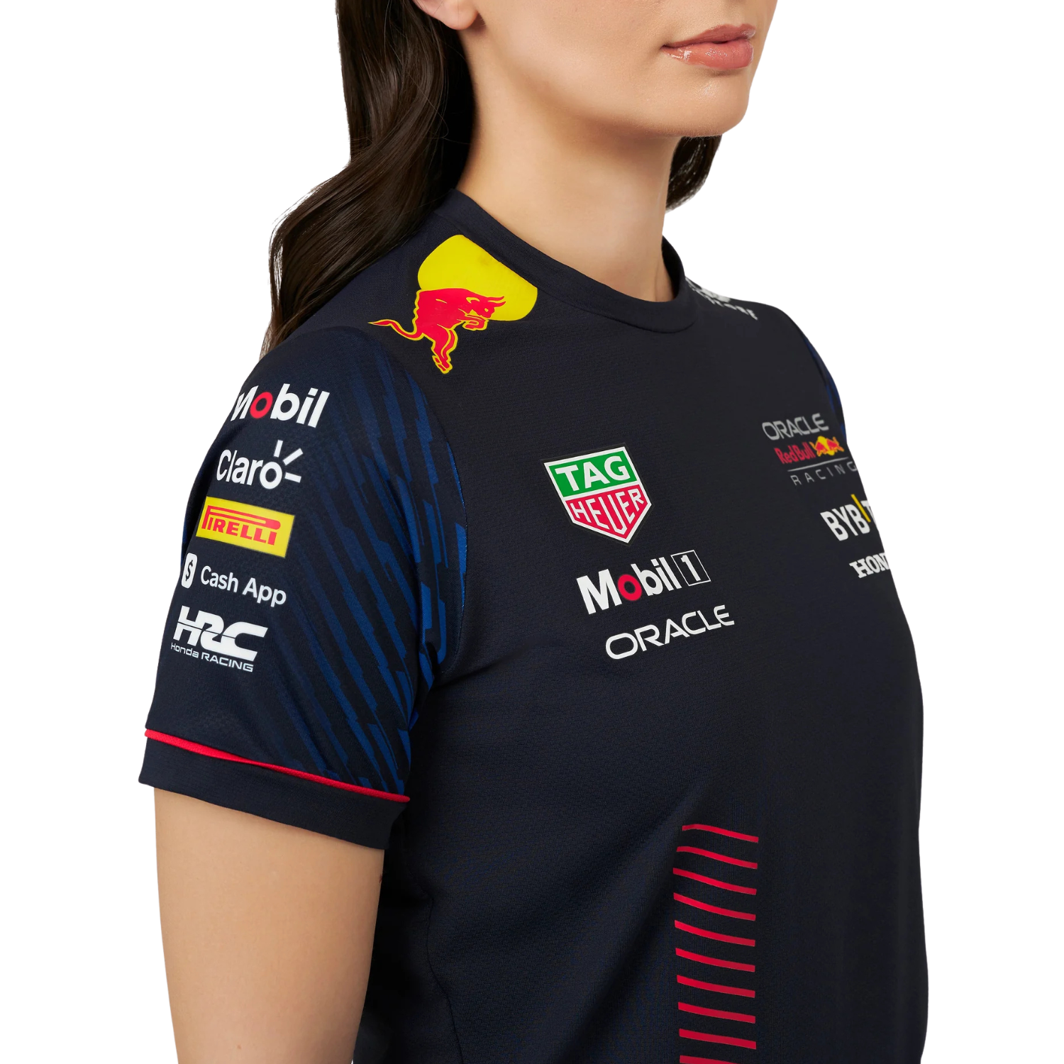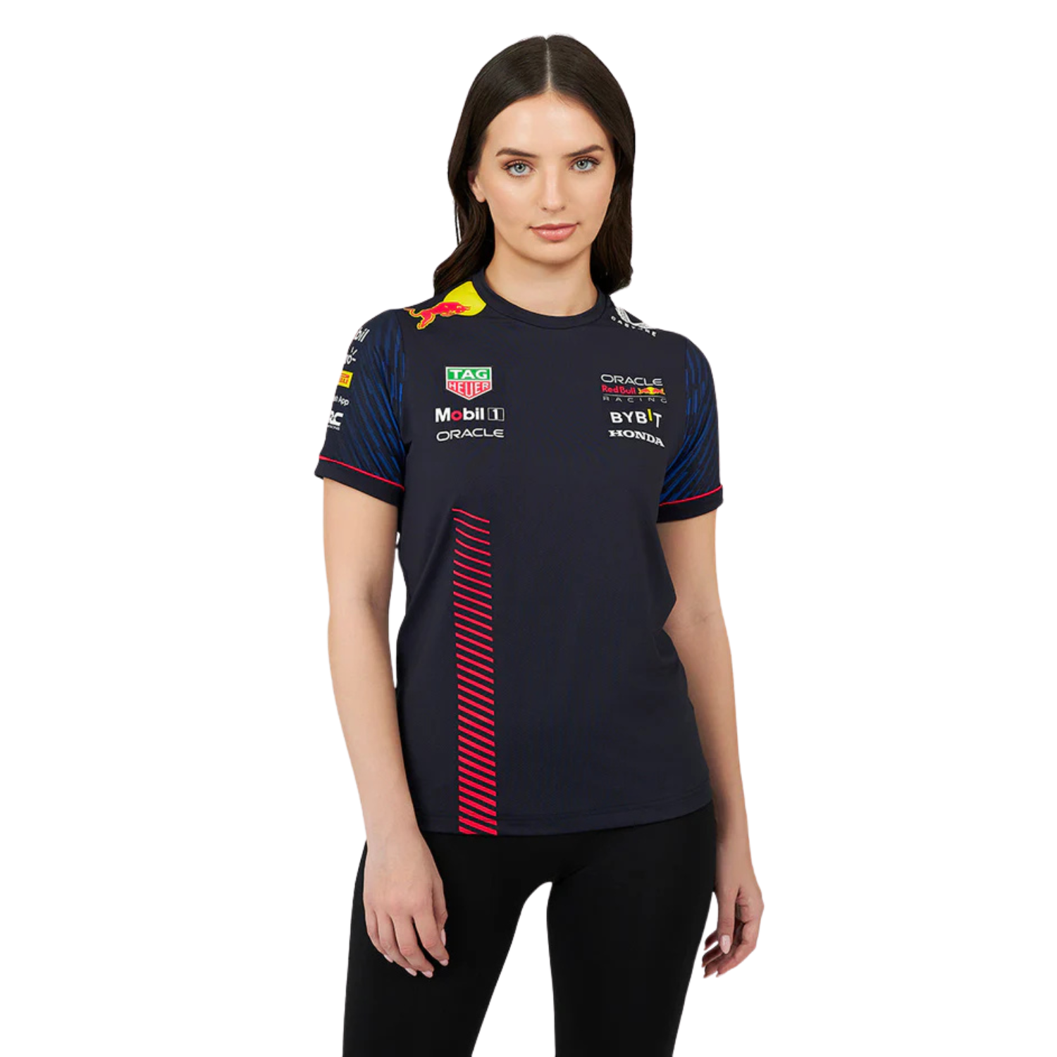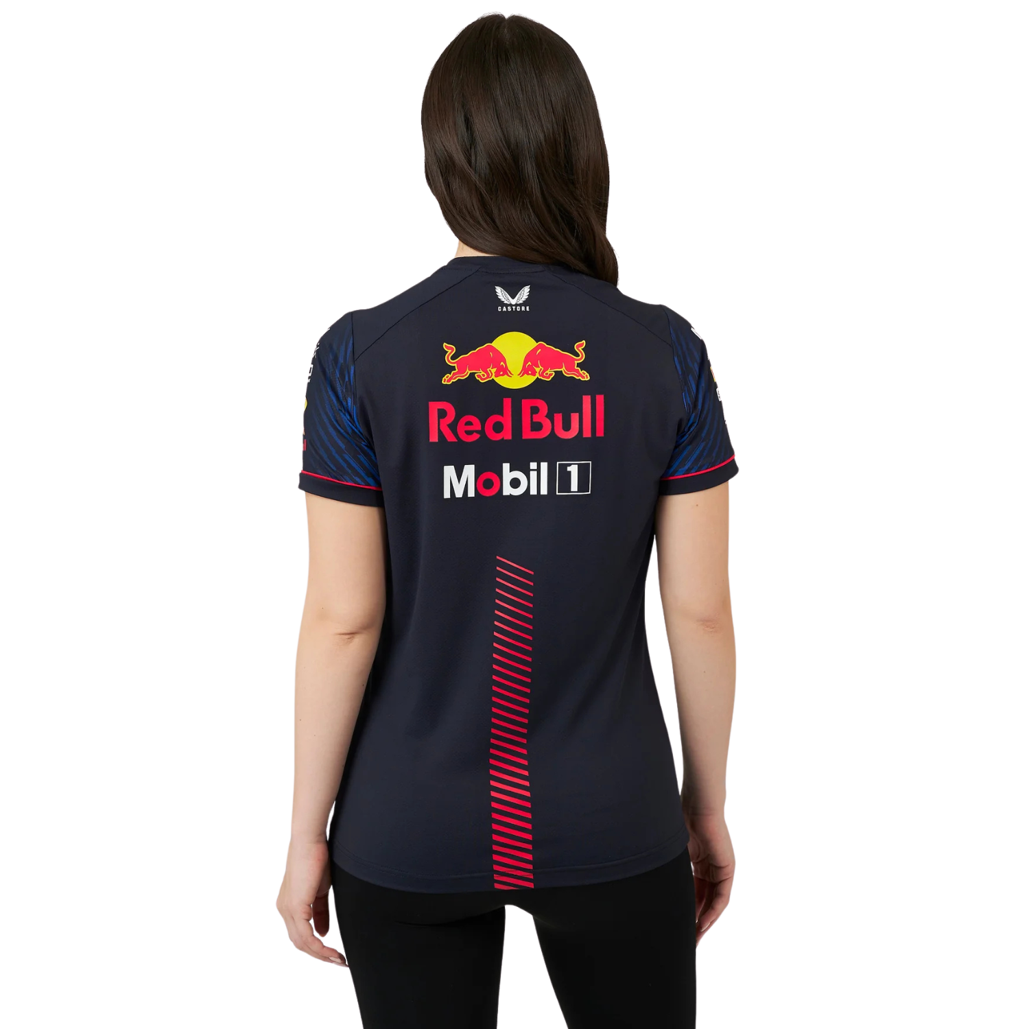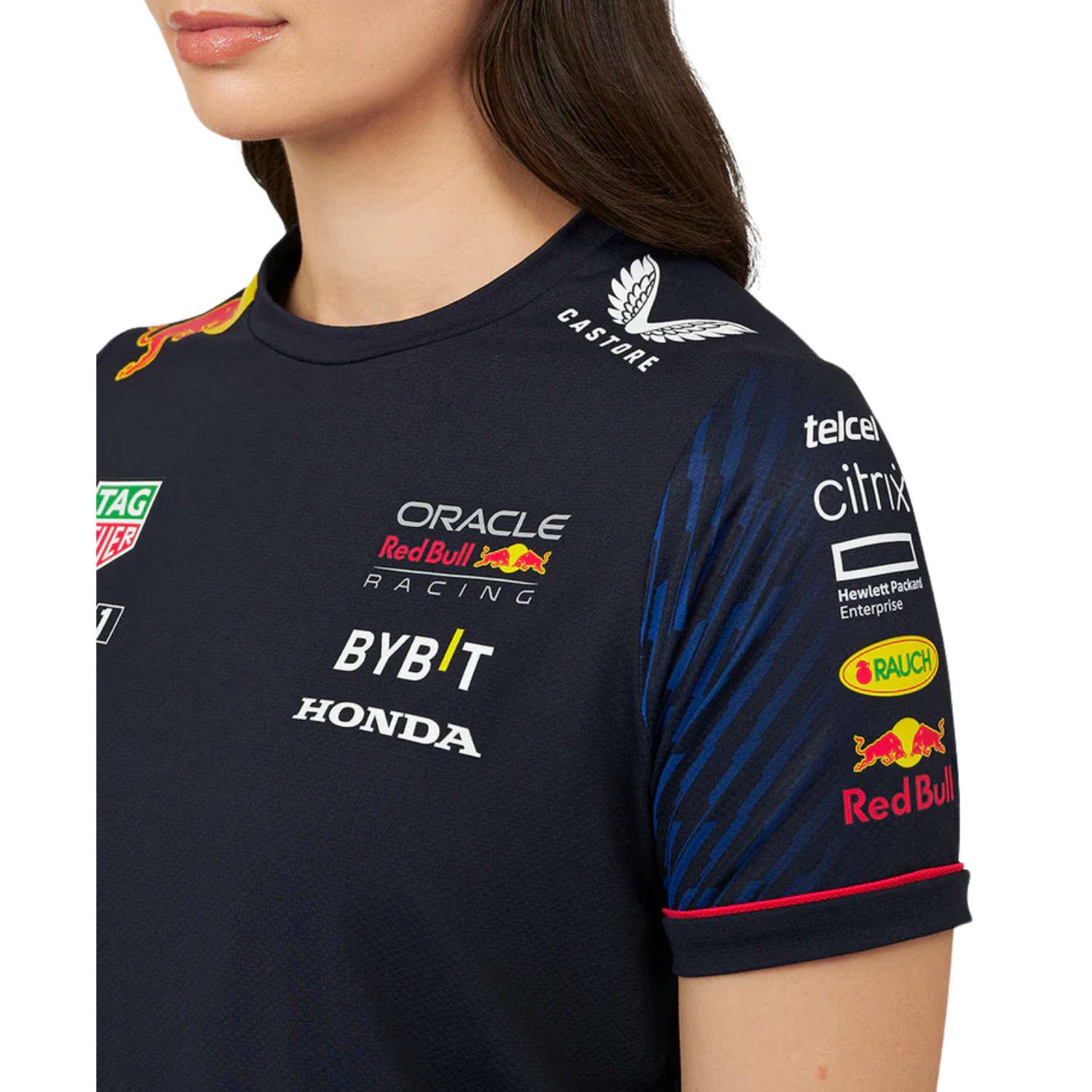 Women's Oracle Red Bull Racing T-shirt from Castore. RBR team sponsor logos on the shirt. Material 100% nylon