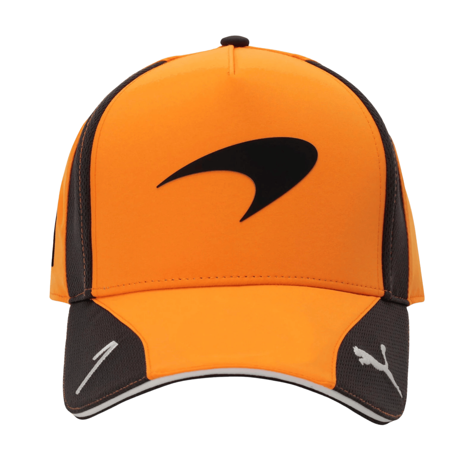 - On the cap the McLaren team logo, the team's partner logos and the number of world champion Lando Norris 1