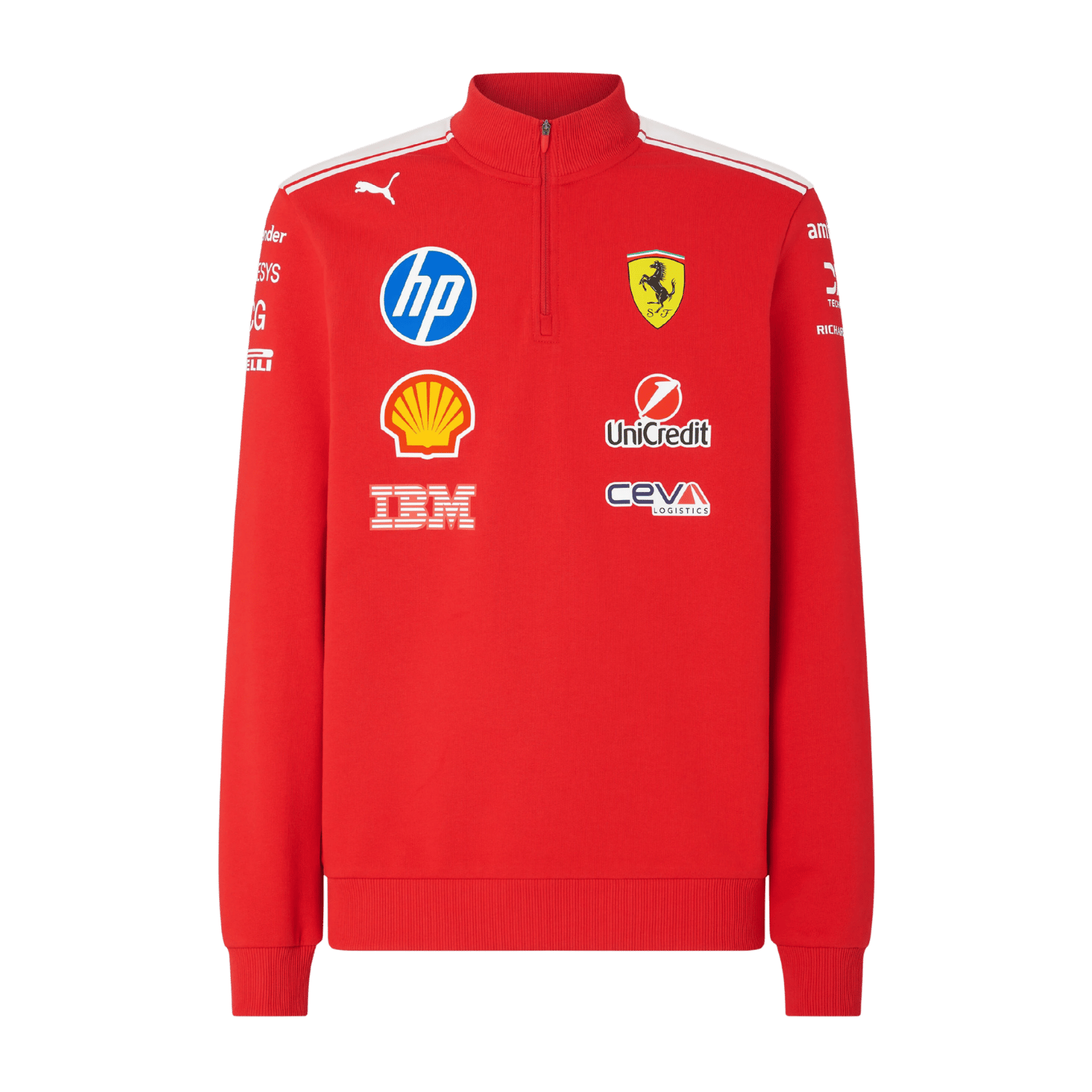 A Replica kollekció PUMA pulóvere a Scuderia Ferrari HP számára a Ferrari csapat 2026-os Formula–1-es szezonban viselt ruházatán alapul. Magas gallérral és félig cipzárral rendelkezik, amely modern és funkcionális megjelenést kölcsönöz neki, amely alkalmas mindennapi viseletre.