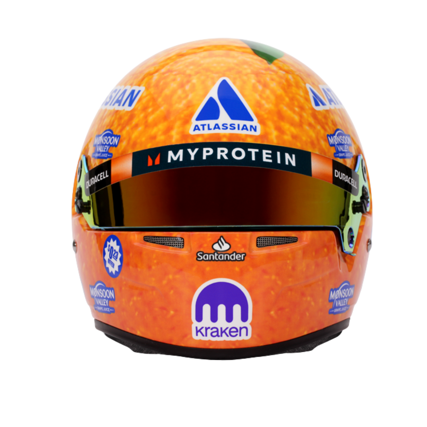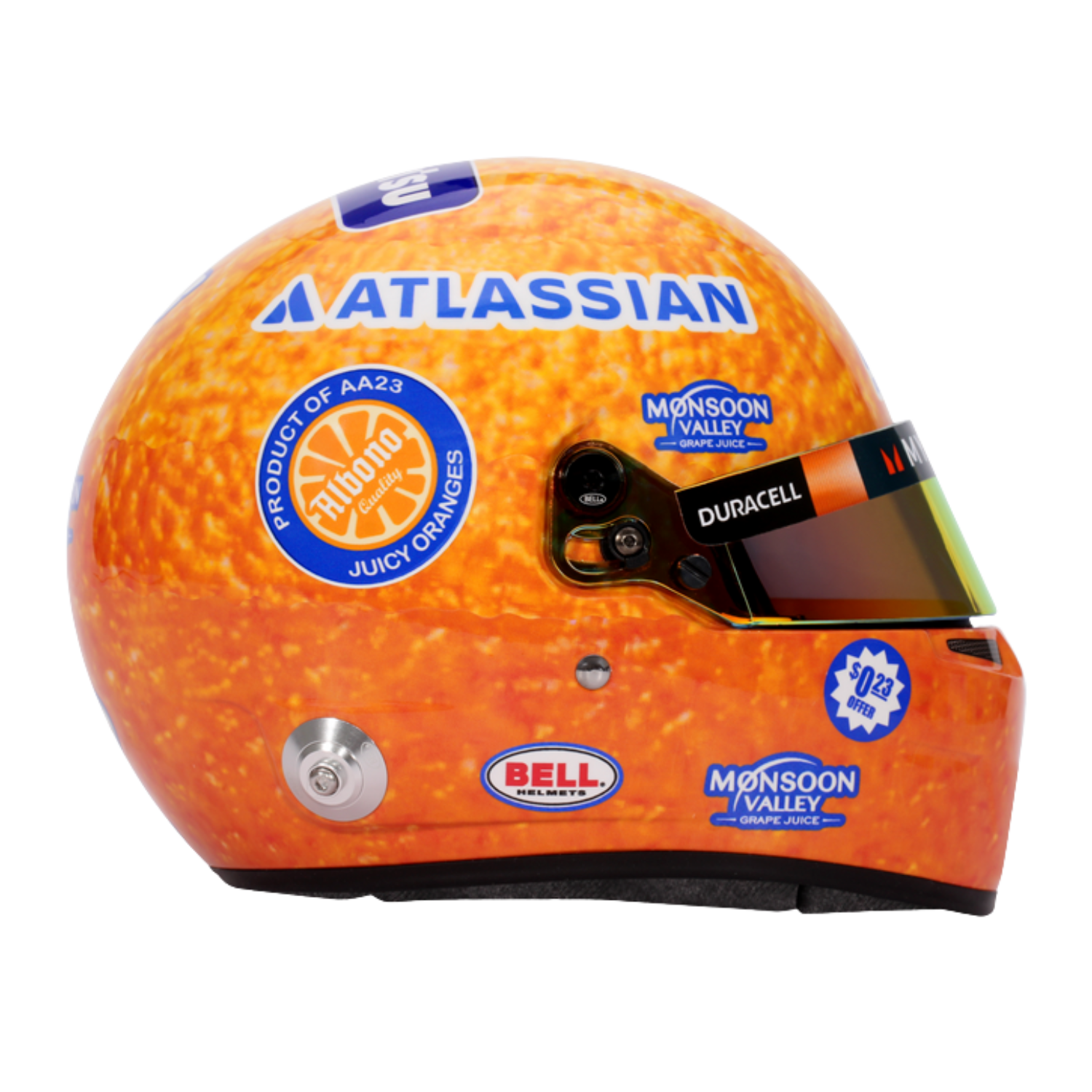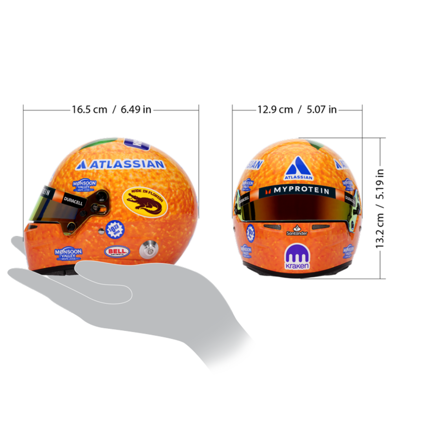 Alex Albon, a Williams csapat pilótájának mini bukósisakja, különleges dizájnnal a 2025-ös Miami Nagydíjra. Limitált kiadás. 1:2 méretarány, a gyártó Bell sisakja.