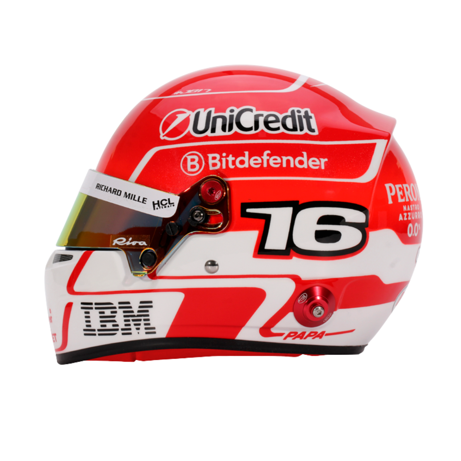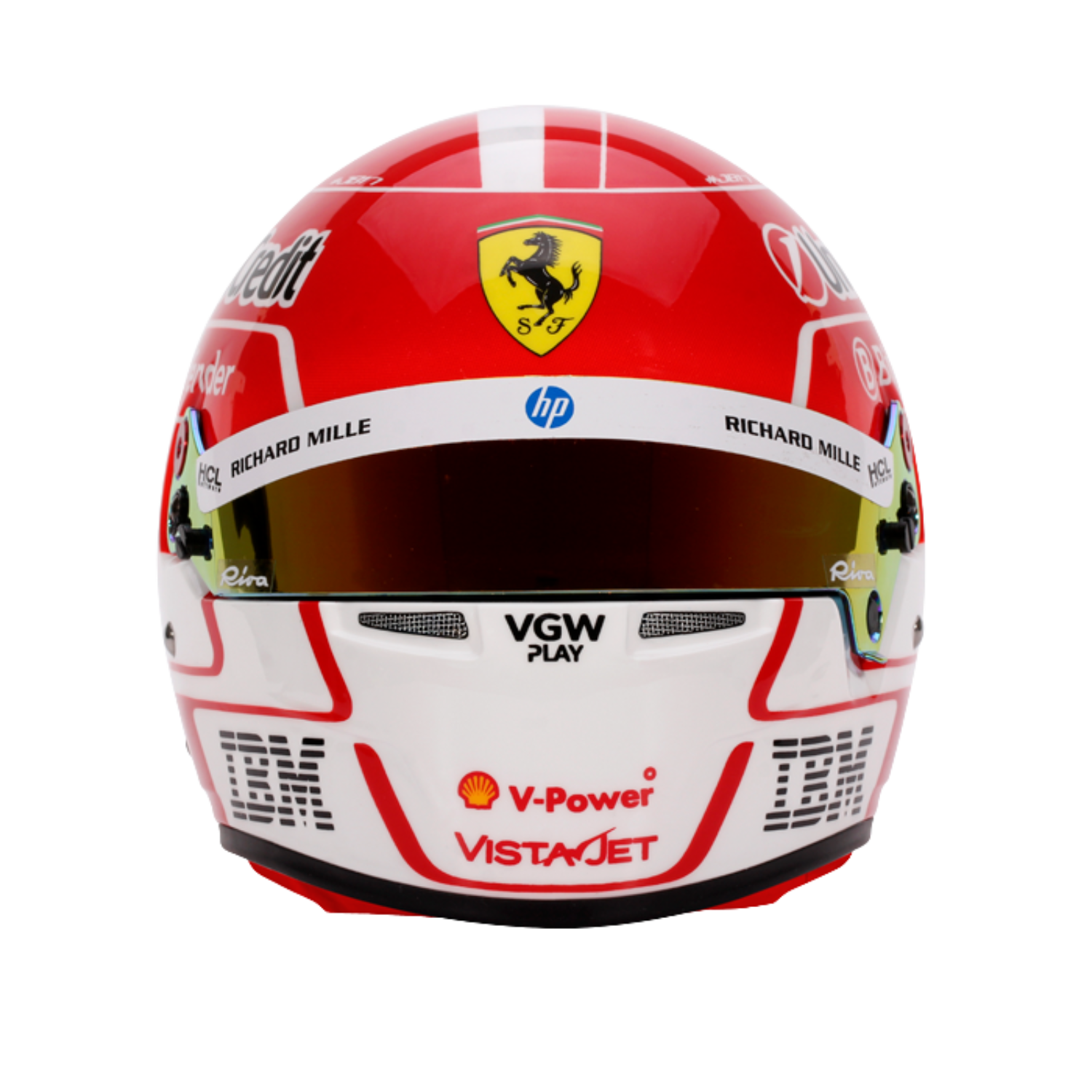 A 2025-ös F1-es szezonra – amely a hetedik szezonja a Scuderia Ferrari HP-nél – Charles Leclerc egy jellegzetes, kétrészes sisakdizájnt fejlesztett ki. A felső rész a csapat ikonikus piros színében pompázik, míg az alsó fehér folt hazáját jelképezi. A hagyományokhoz híven a monacói zászló továbbra is felül, a rajtszáma pedig az oldalakon található – tisztelgés gyökerei és a Prancing Horse csapathoz való tartozása iránti büszkesége előtt.