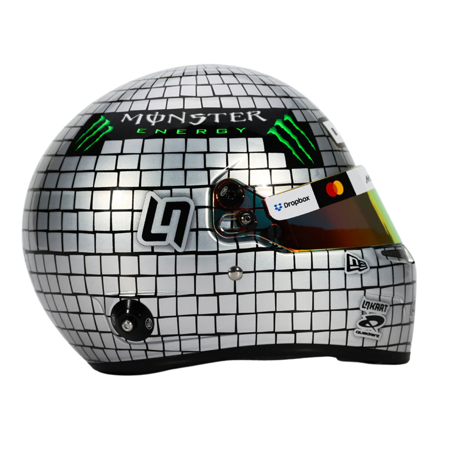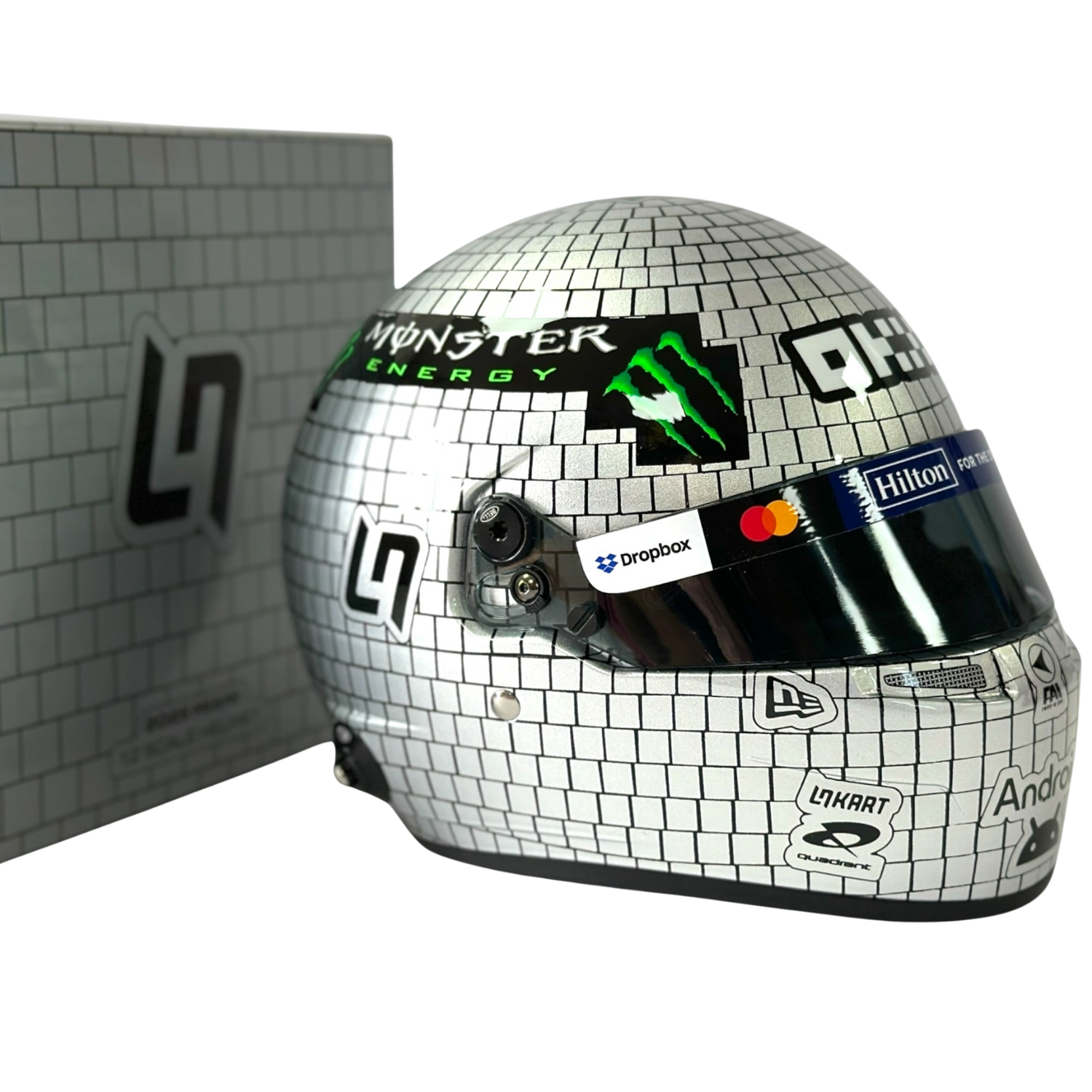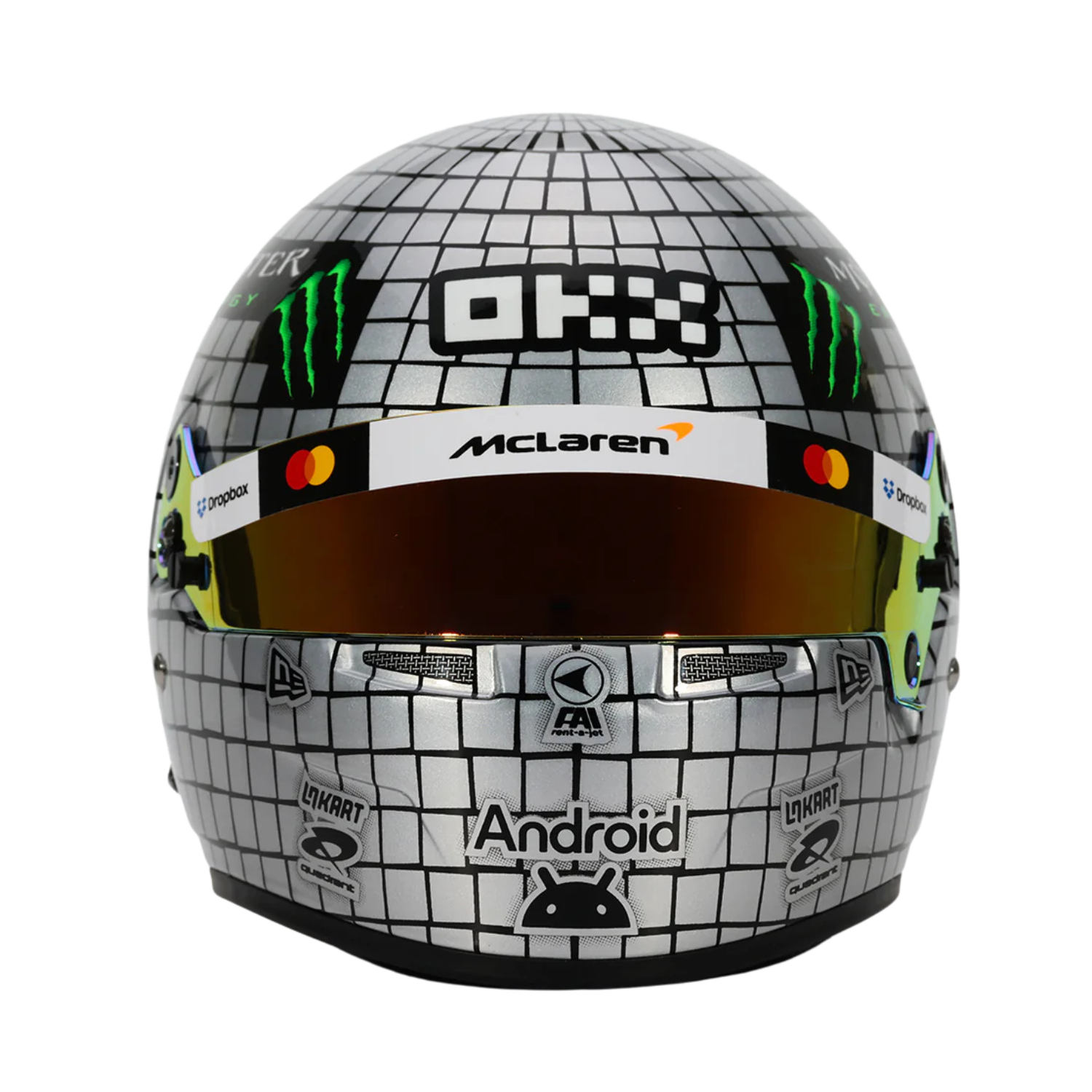 Lando Norris mini helmet in a special design for the Miami Disco Ball 2025 Grand Prix. Limited edition. Scale 1:2, manufacturer Bell helmets.