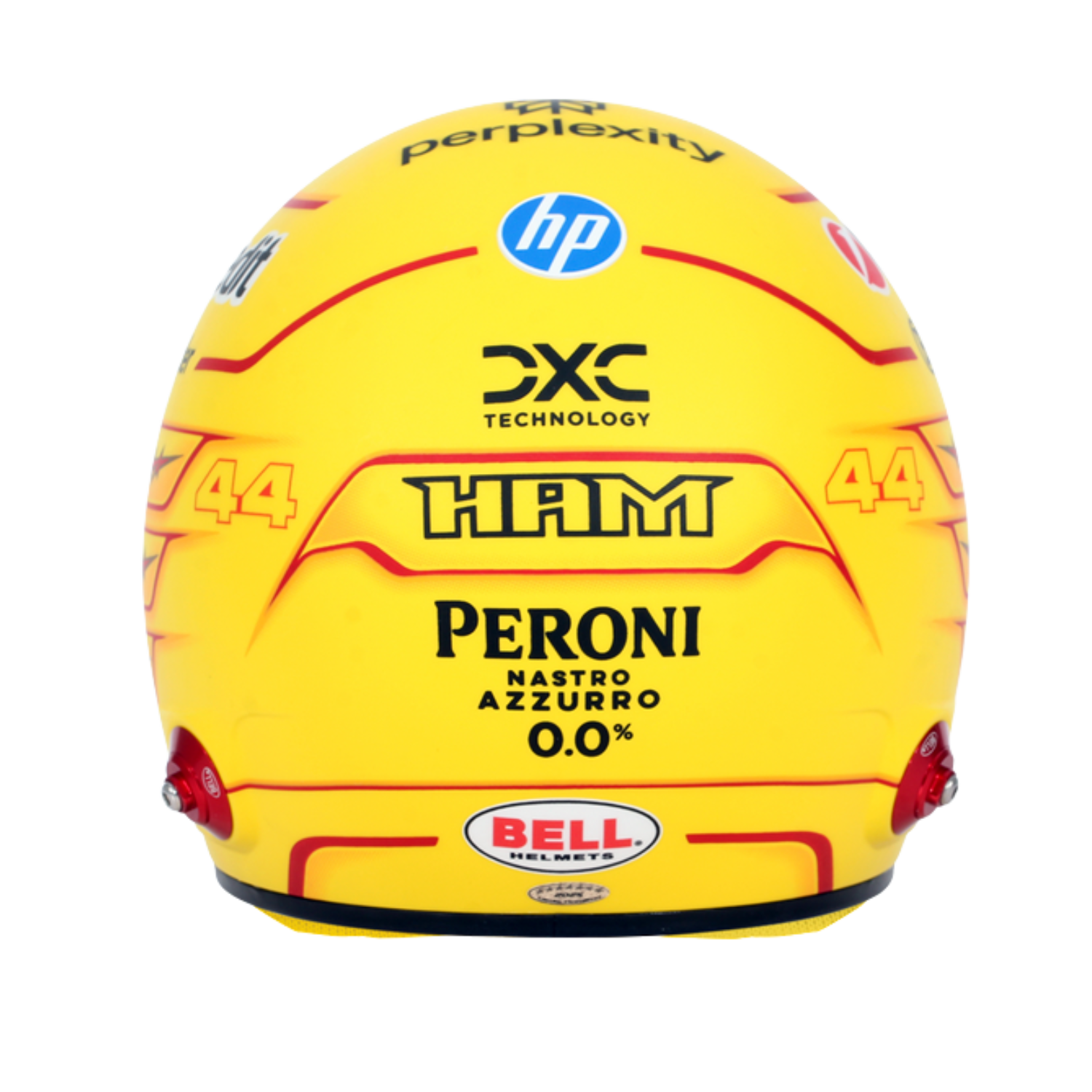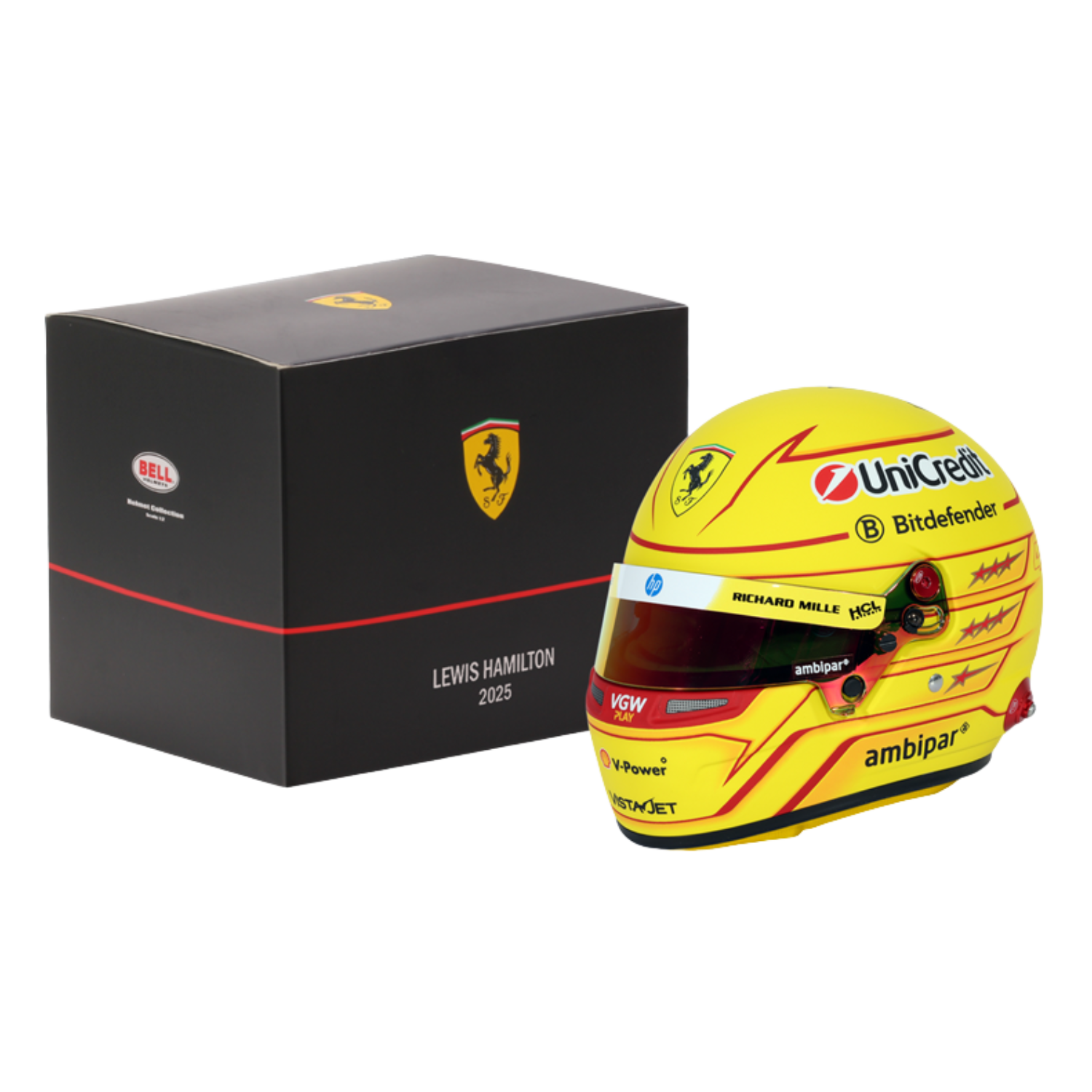 ATTENTION PRE-ORDER. Mini helmet of Scuderia Ferrari team driver Lewis Hamilton in 1:2 scale, manufactured by Bell helmet. Expected availability November - December 2025