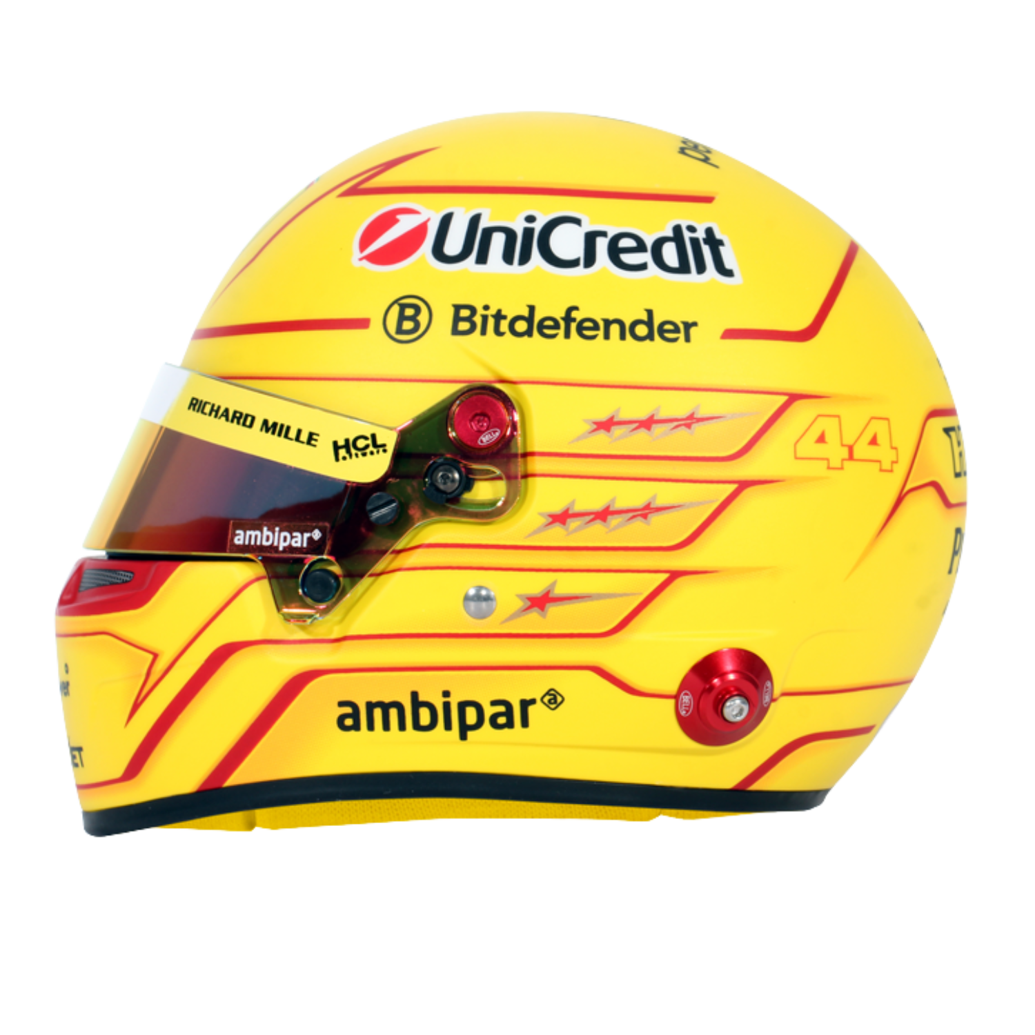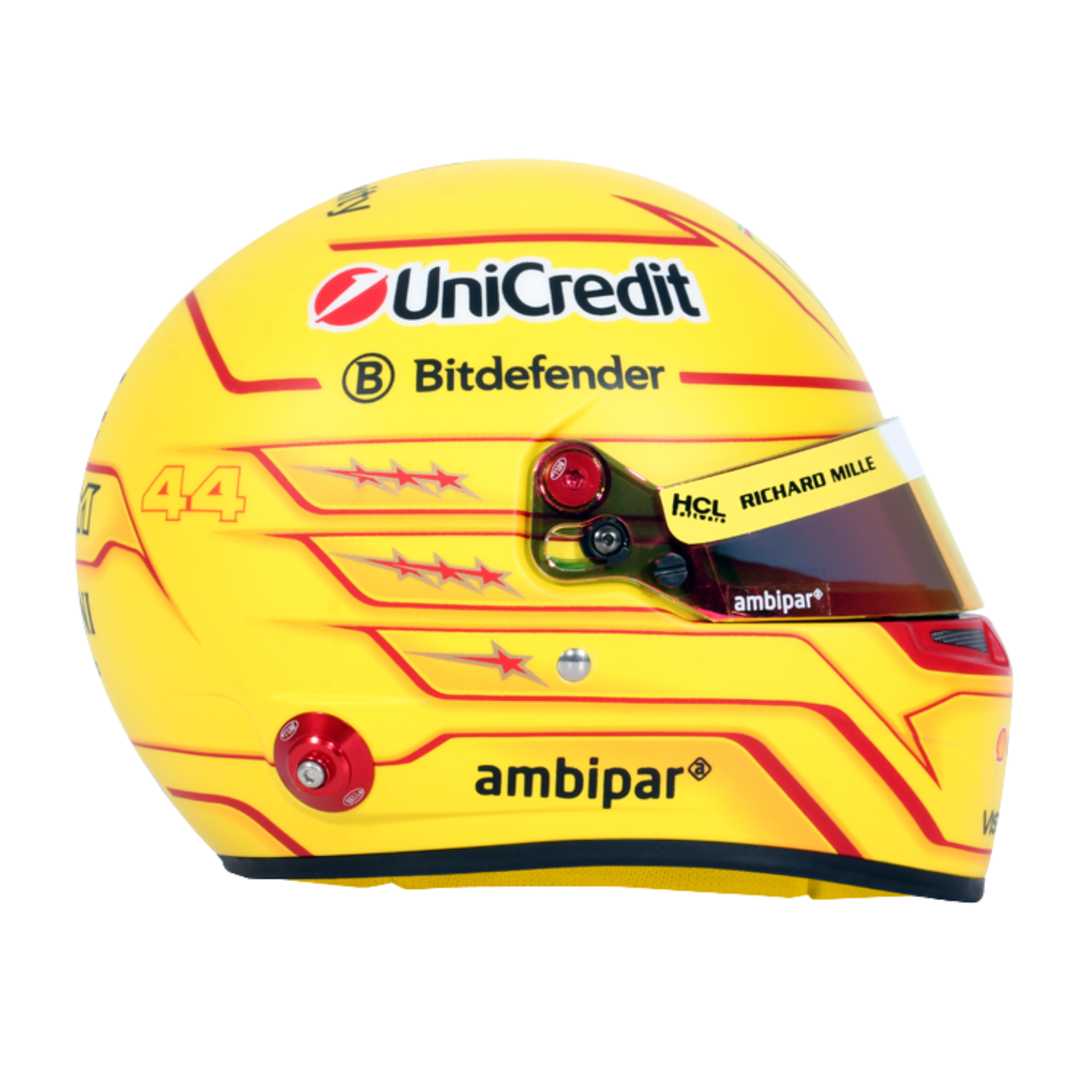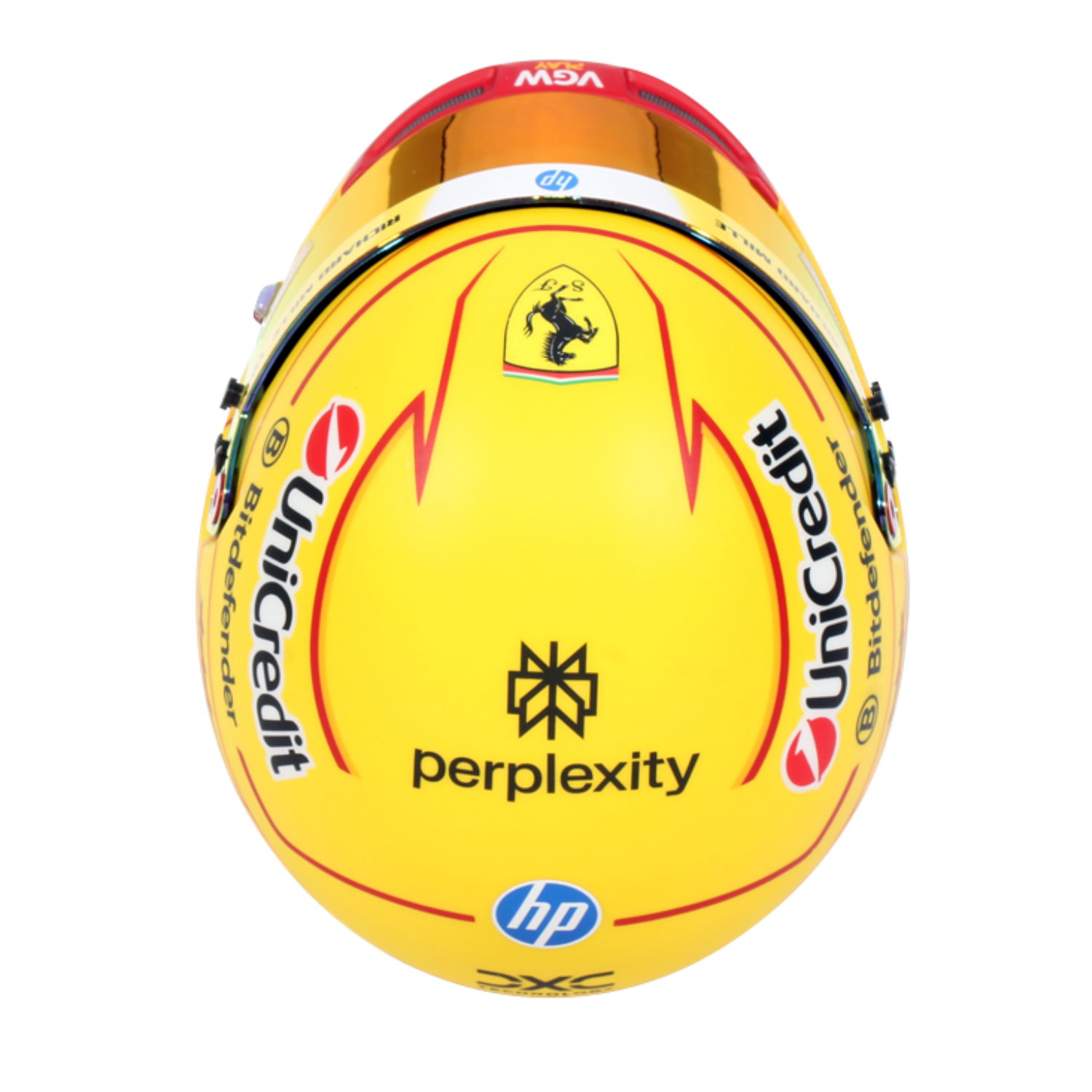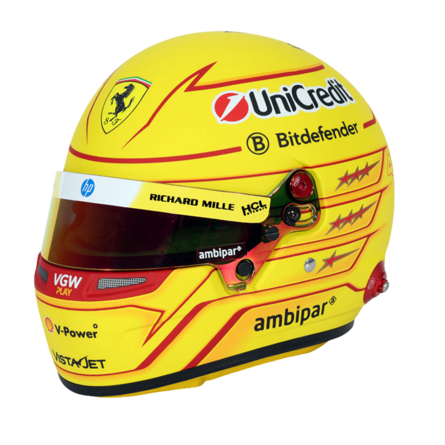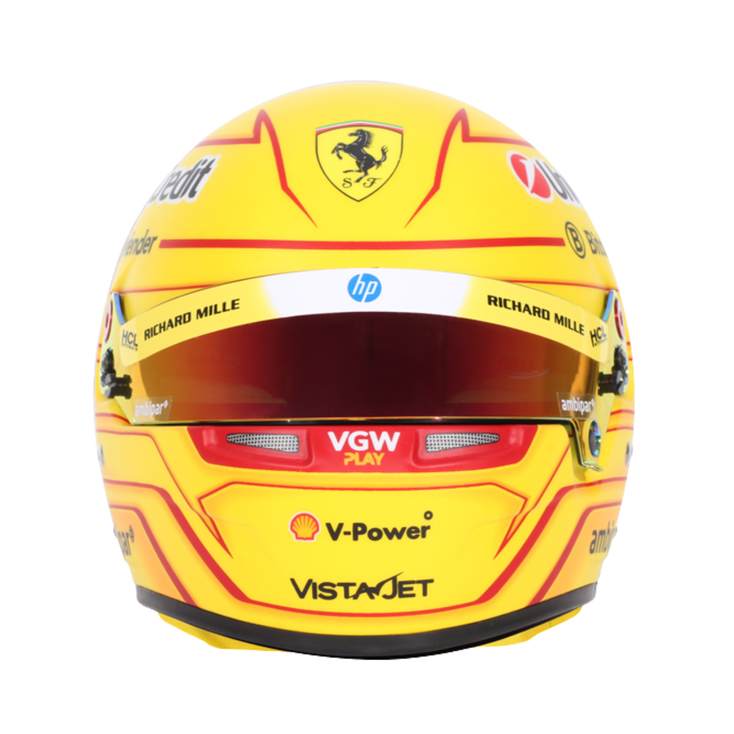 FIGYELEM, ELŐRENDELÉS! Lewis Hamilton, a Scuderia Ferrari csapat pilótájának mini bukósisakja 1:2 méretarányban, a Bell gyártmánya. Várható elérhetőség: 2025. november - december.
