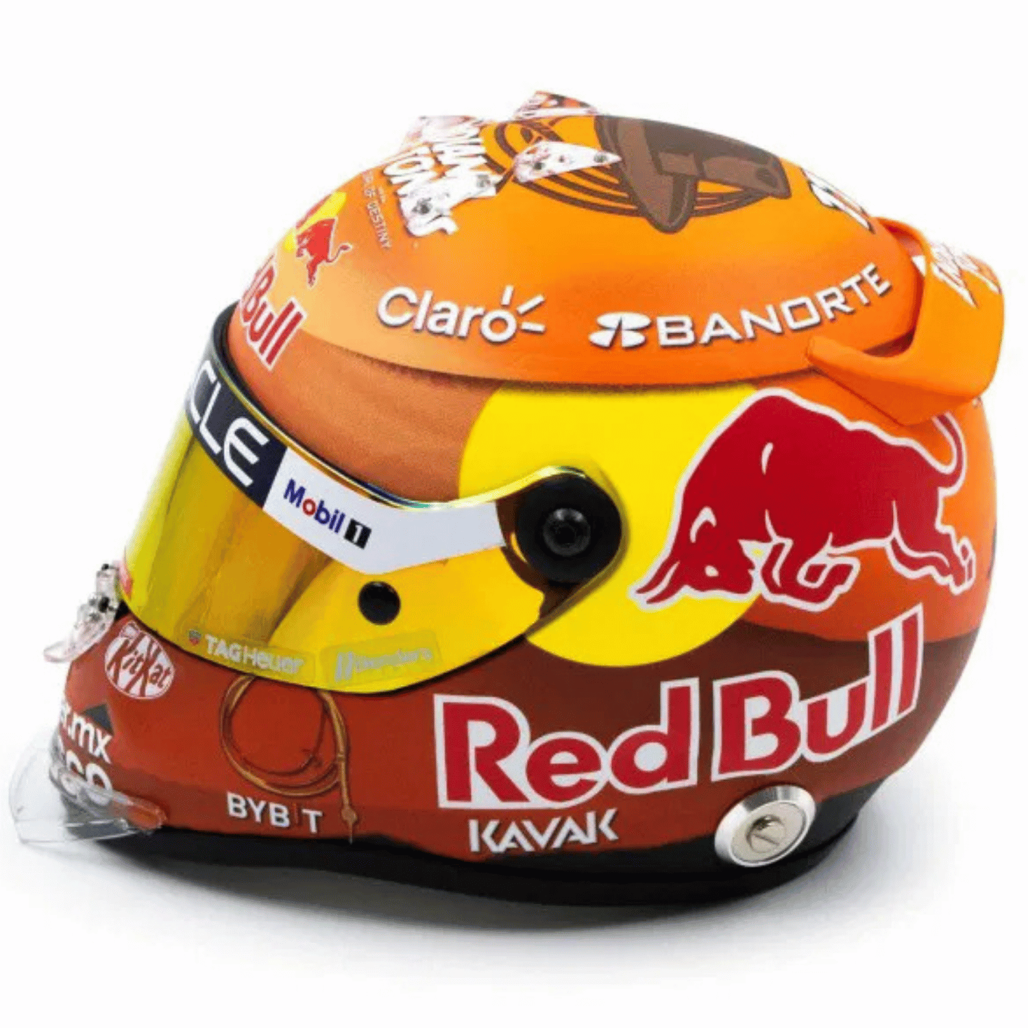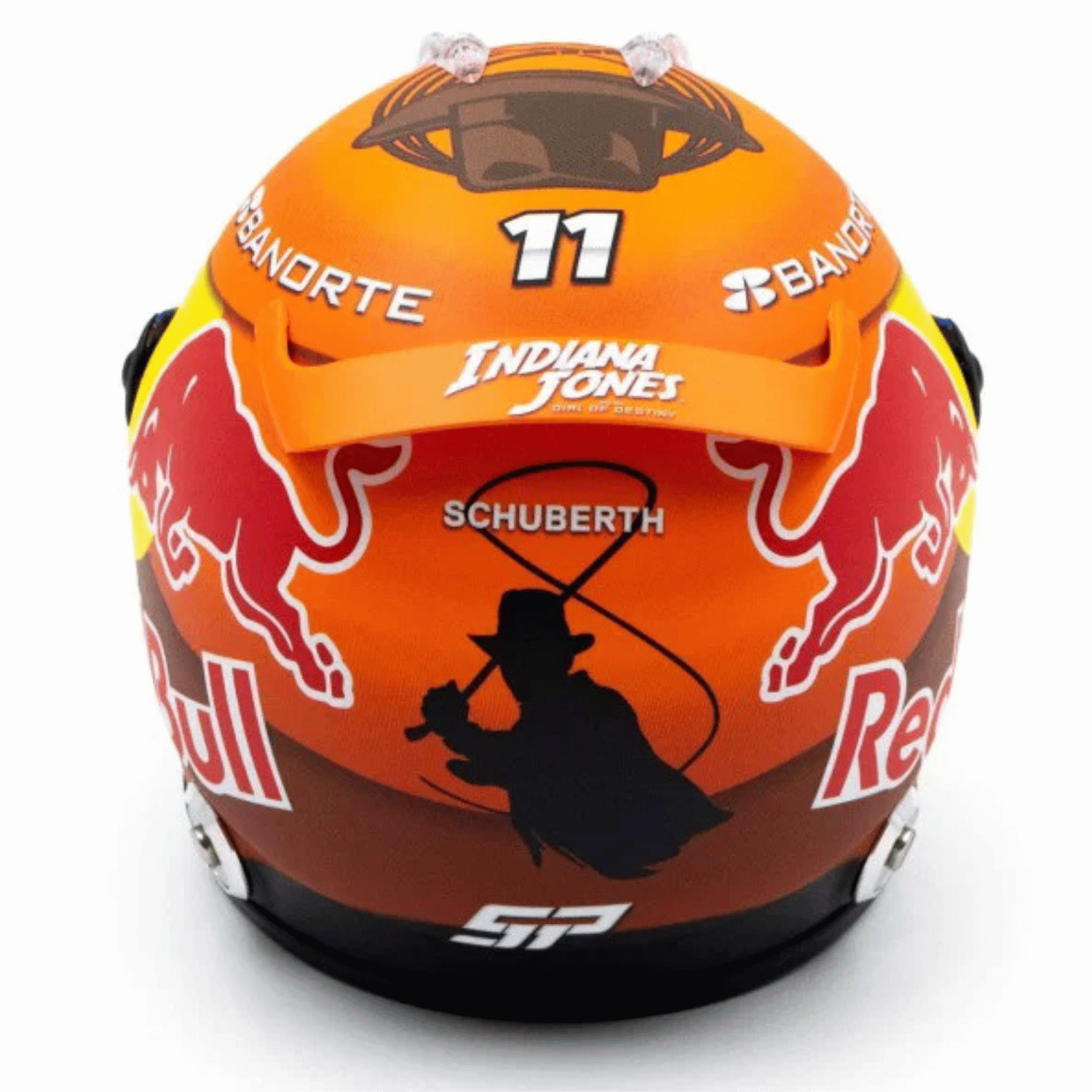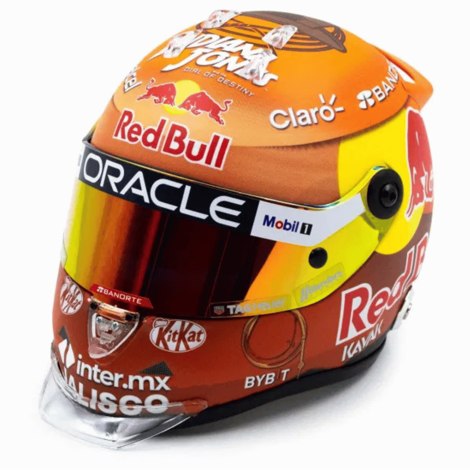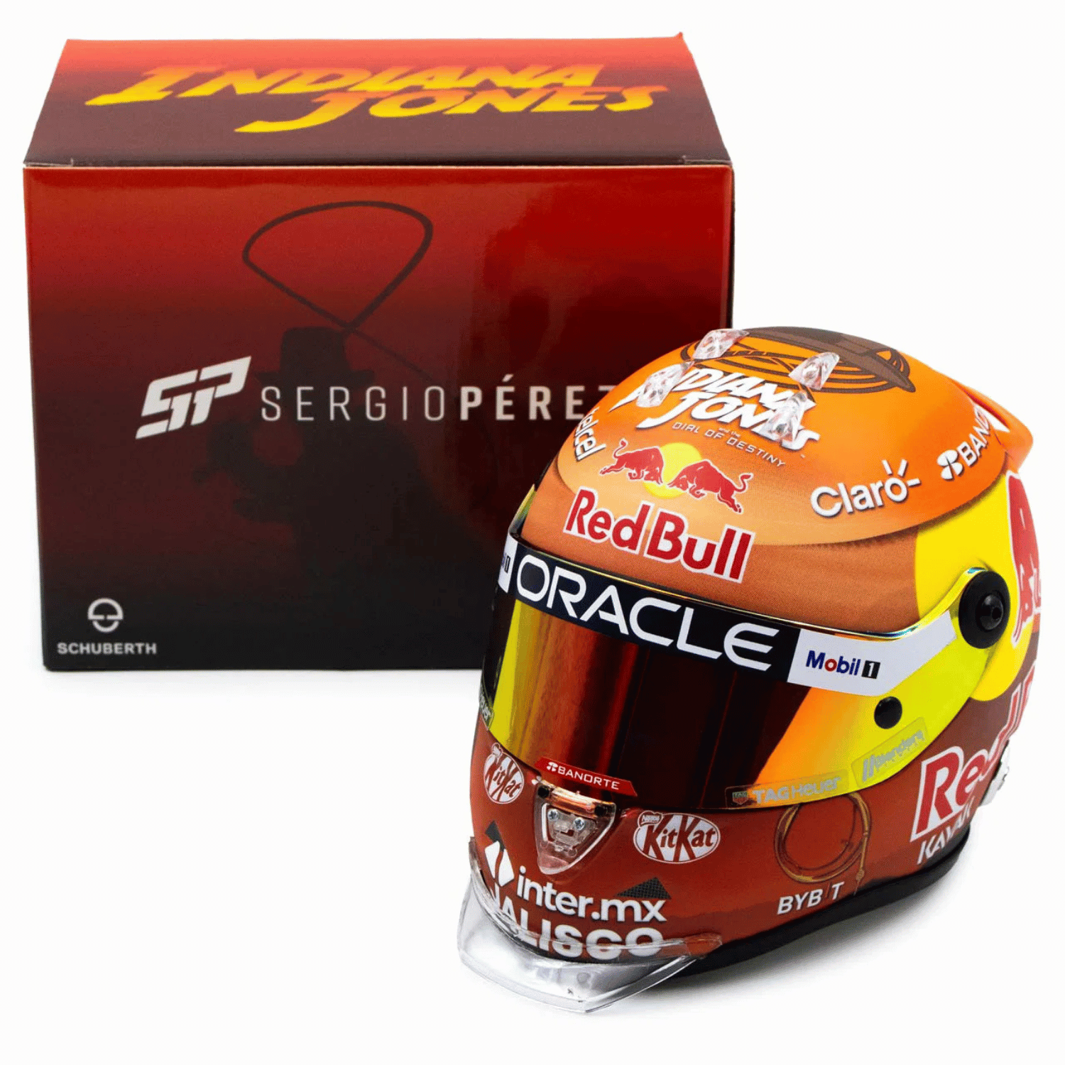 Az 1/2 méretarányú miniatűr sisak hű másolata annak a sisaknak, amelyet az Oracle Red Bull Racing Team pilótája, Sergio Pérez viselt a 2023-as Formula 1 Kanadai Nagydíjon. A dizájn az Indian Jones filmsorozat ötödik részén alapul, amelyet a kanadai verseny körül mutattak be.