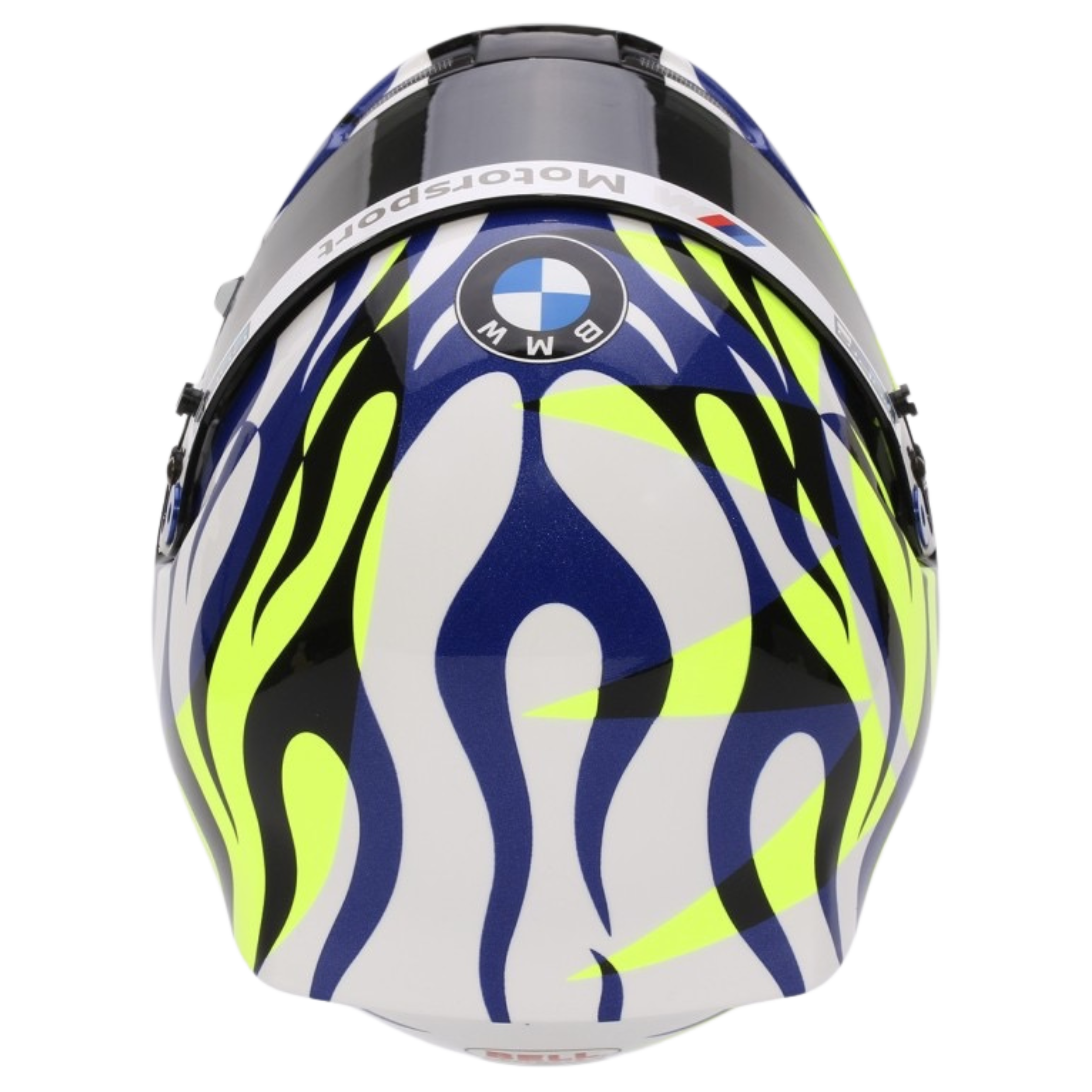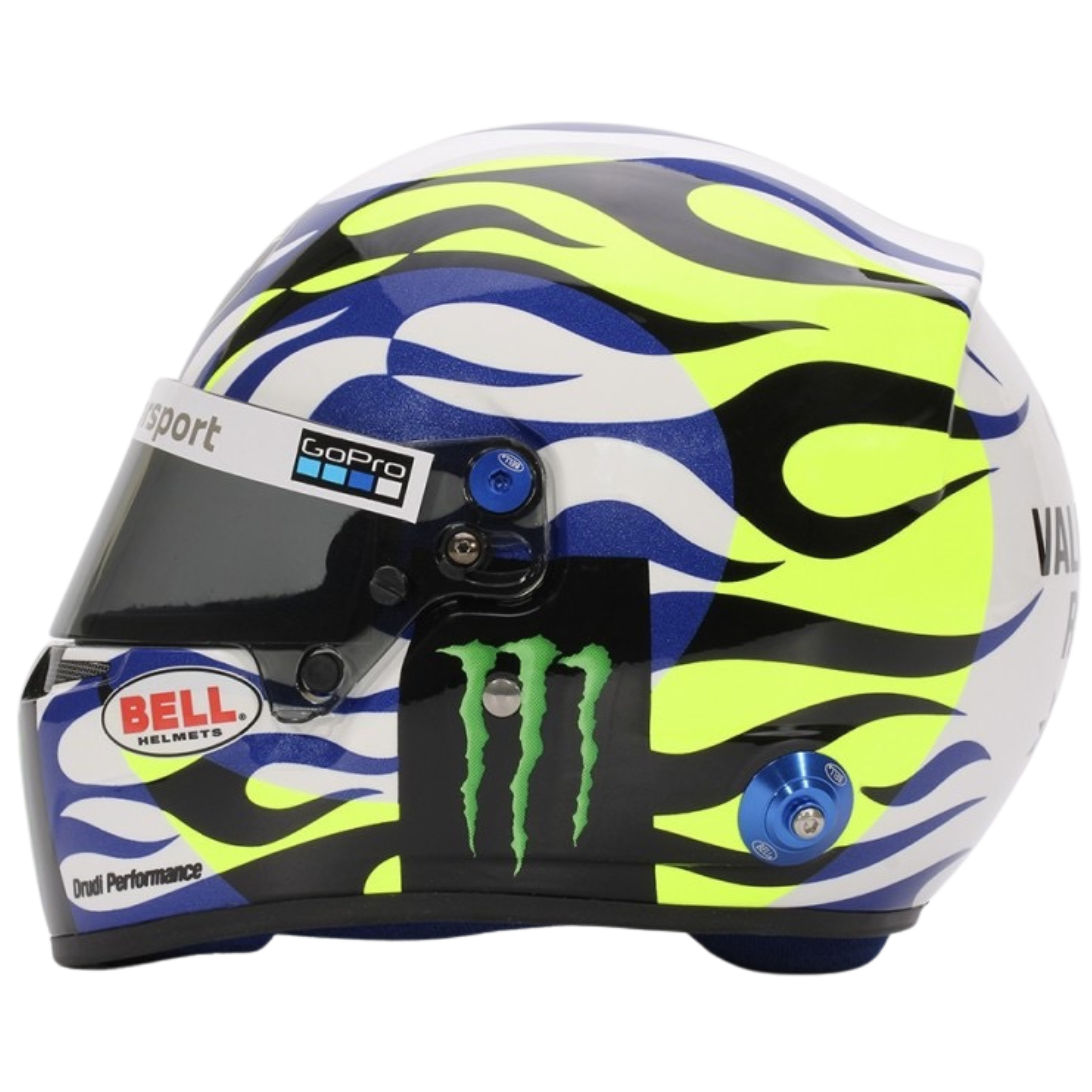 Valentino Rossi motoros és autóversenyző 2023-as mini sisakja, amelyet a GT World Challenge Europe-ban használtak. Pontos replika fröccsöntés 1:2 méretarányban