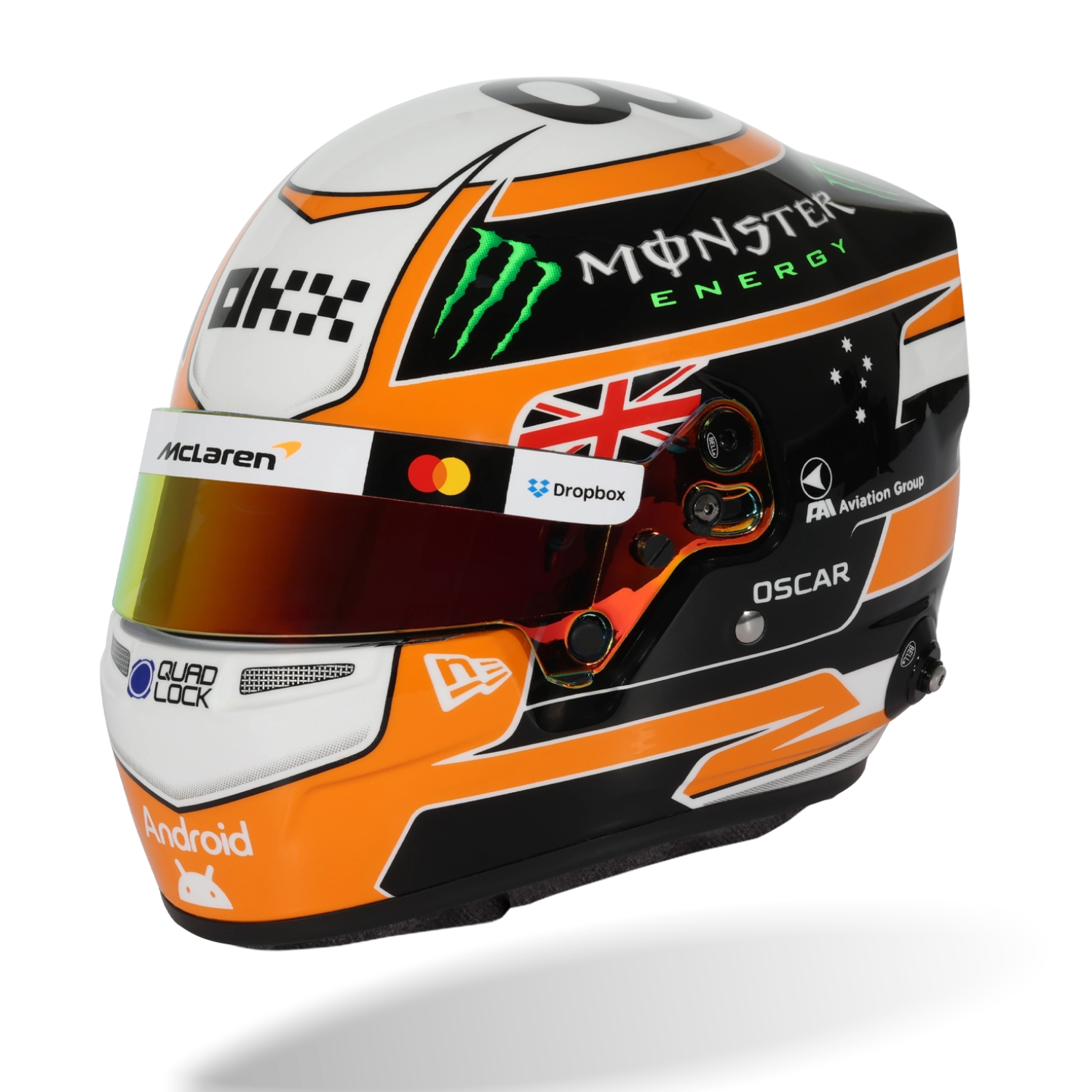 Oscar Piastri vintage külsőt kölcsönzött a 2025-ös Monacói Nagydíjra tervezett sisakjának, amelyet az M7A – az első McLaren, amely 1968-ban Forma-1-es futamot nyert – festése ihletett. Az ausztrál pilóta a szokásos színeket fehér-fekete-papaya sisakra cserélte, a retró hatást pedig a 81-es rajtszáma díszíti. Időtlen részlet a motorsport legikonikusabb színpadán.
