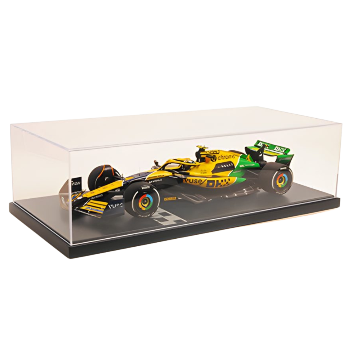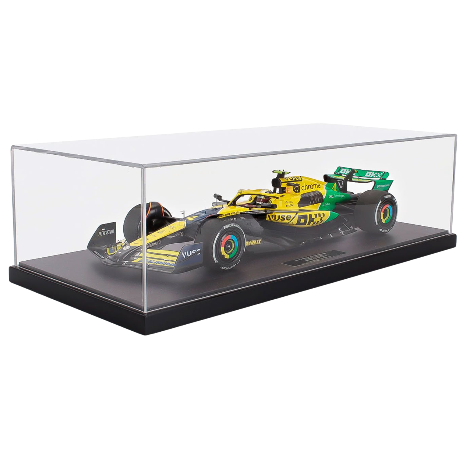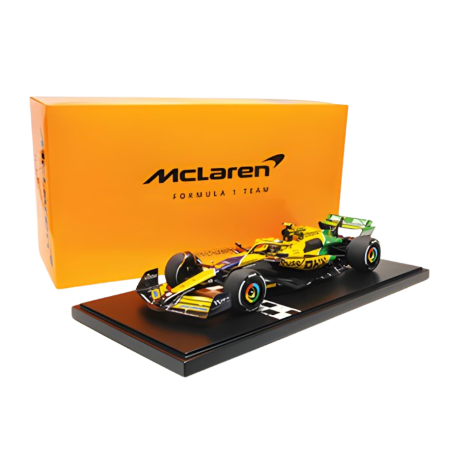 Exkluzívny model od výrobcu Minichamps McLaren MCL38 jazdec Land Norris v špeciálnom prevedení pre veľkú cenu Monaka SENNA 30th ANNIVERSARY. Vyrobených 144 kusov, materiál resin. Mierka 1:12.