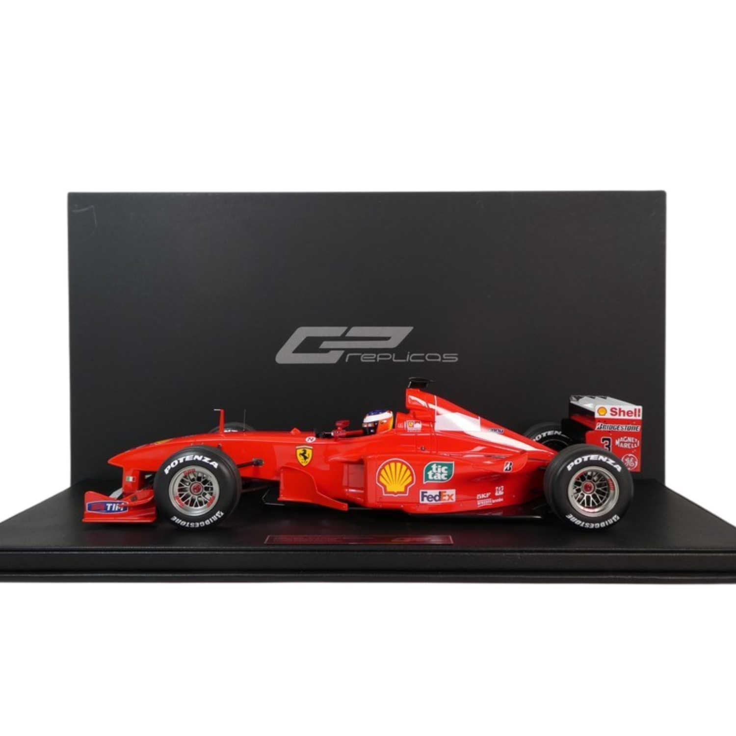 A GP Replicas modellje 1:12 méretarányban. A Ferrari F1 F399 pilótája, Michael Schumacher. A Monaco Nagydíjra tervezett modell. Műanyag vitrinben szállítjuk, dohánygyártó matricáival együtt.