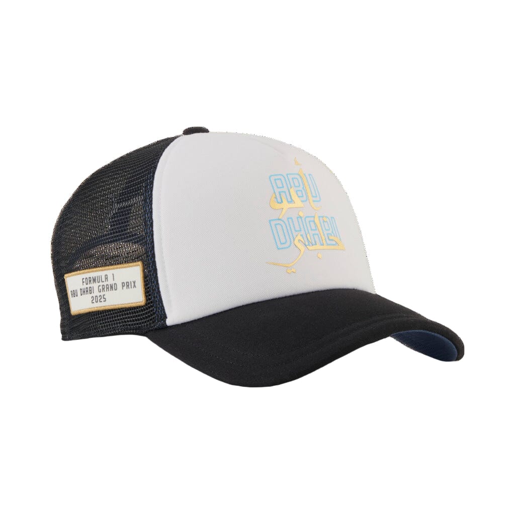 F1 Abu Dhabi cap. The cap has the Abu Dhabi inscription, the F1 logo and the Formula 1 Abu Dhabi Grand Prix inscription. The back has an adjustment strap. Manufacturer Puma.