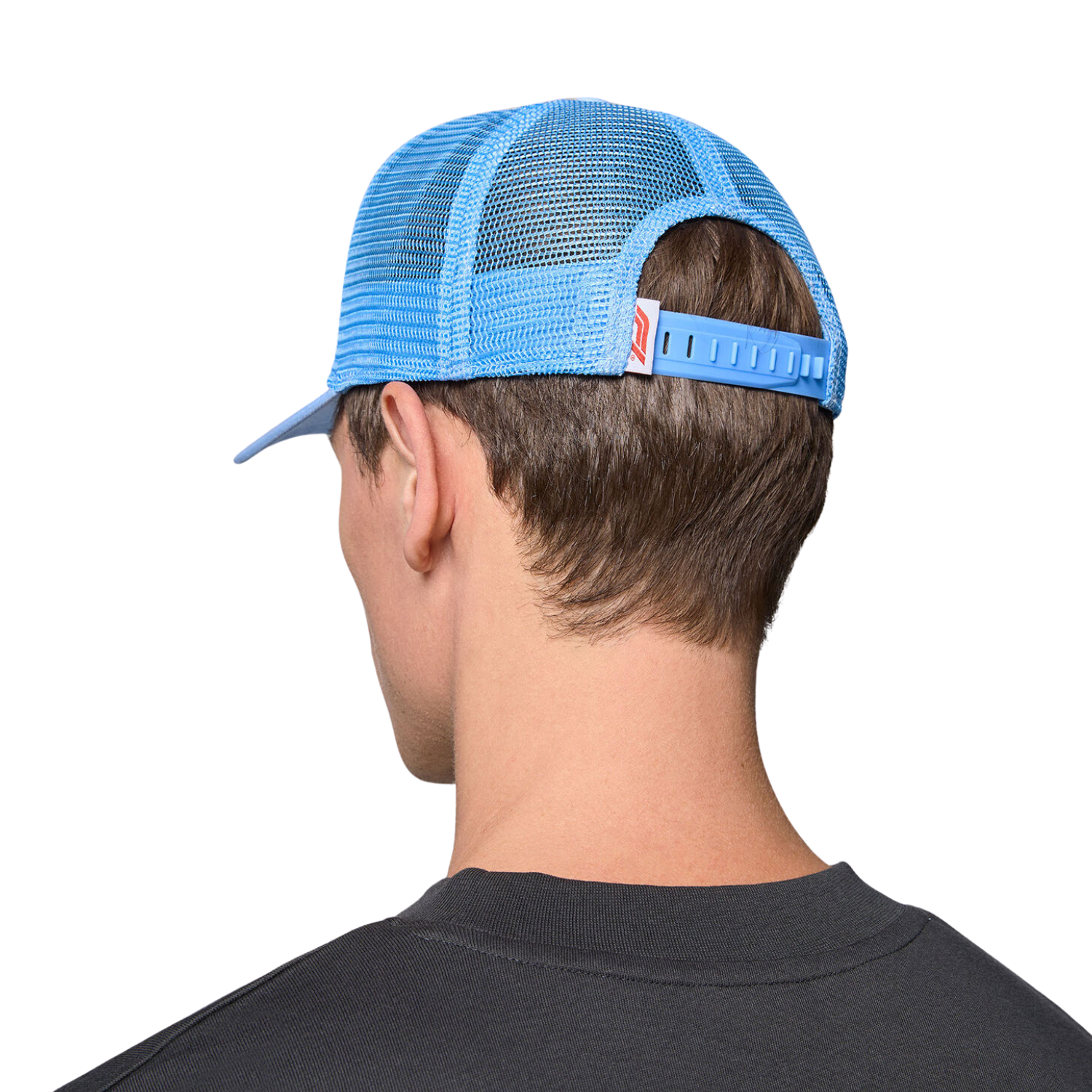 Formula 1 trucker cap in blue. Formula 1 lettering on the cap, mesh on the back and an adjustment strap.