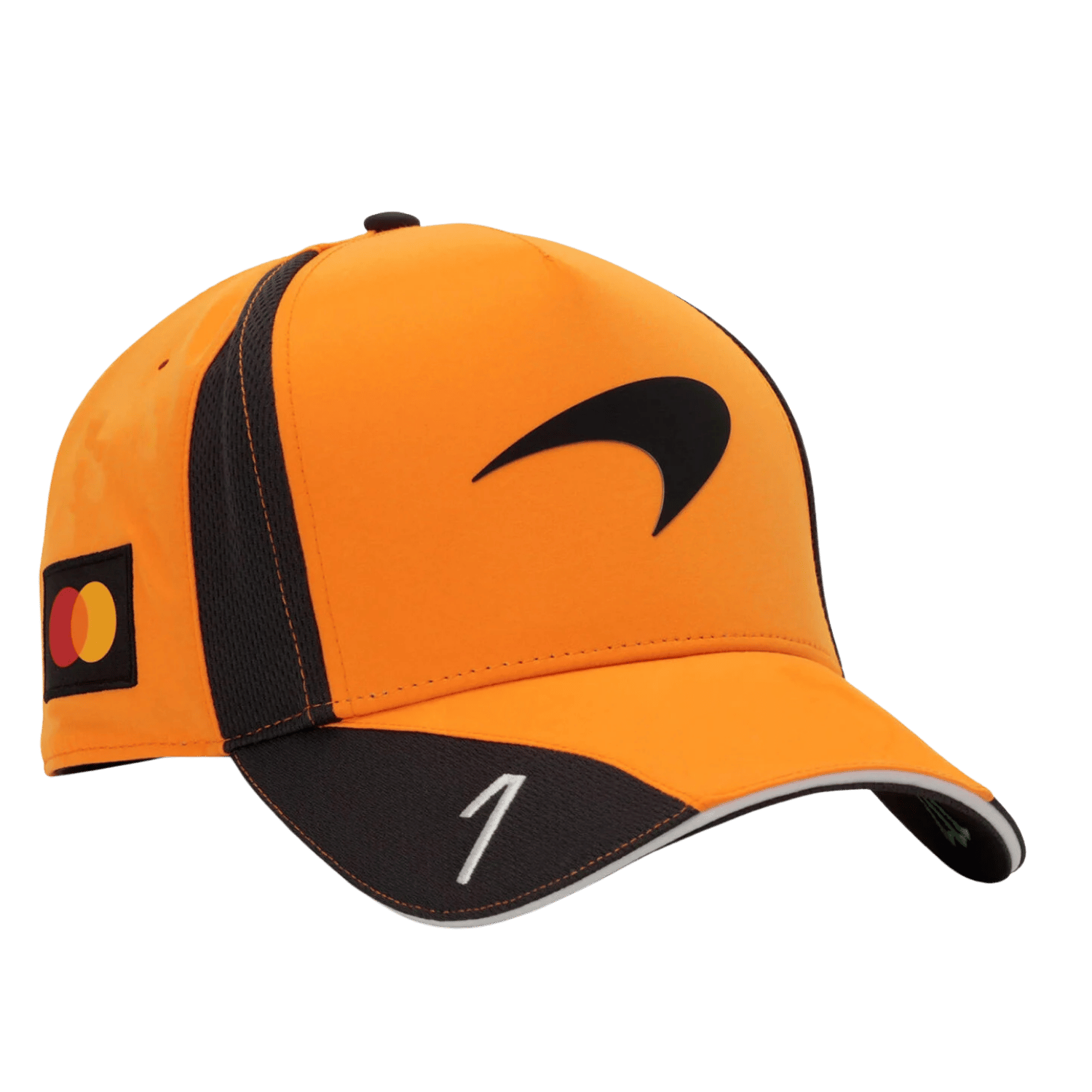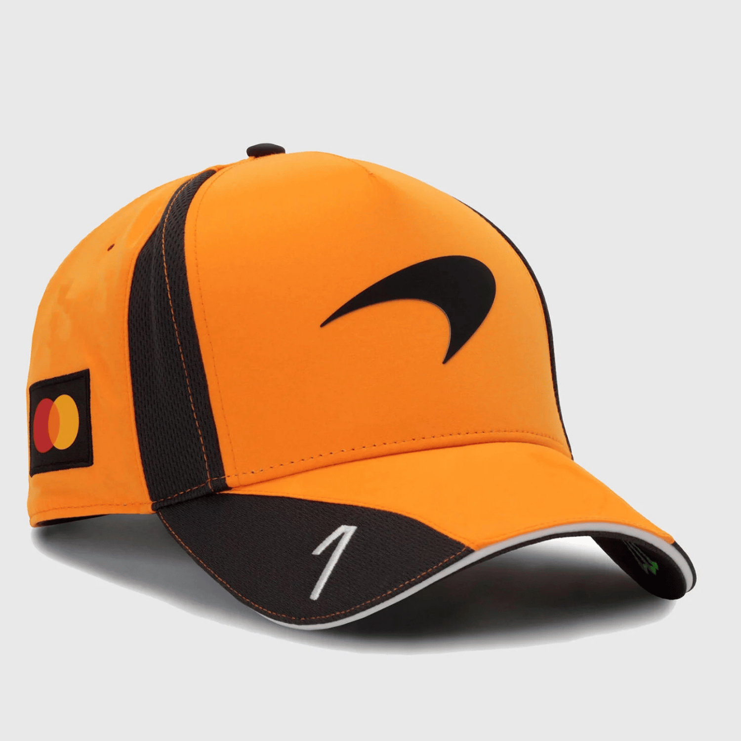 McLaren Lando Norris cap. The cap features the McLaren team logo, team partner logos and world champion Lando Norris' number 1. Manufacturer Puma, adjustment strap on the back.