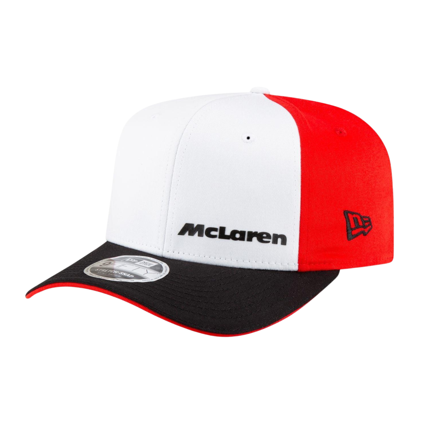 McLaren sapka különleges dizájnnal a 2024-es Monaco Nagydíjra. A sapkán a McLaren csapatlogója és a New Era logó található. Hátulján állítható pánt található.