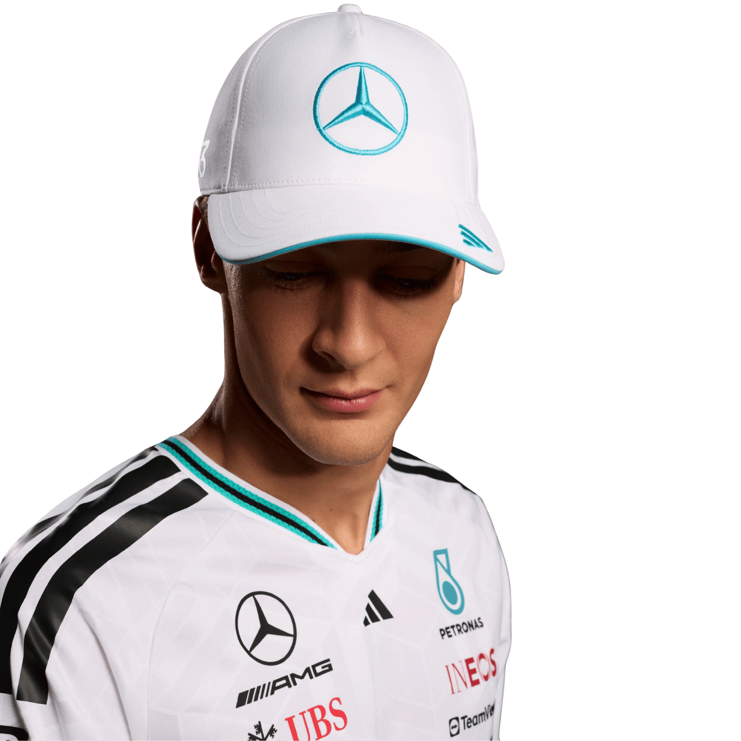 AMG Petronas Mercedes George Russel team cap in white.