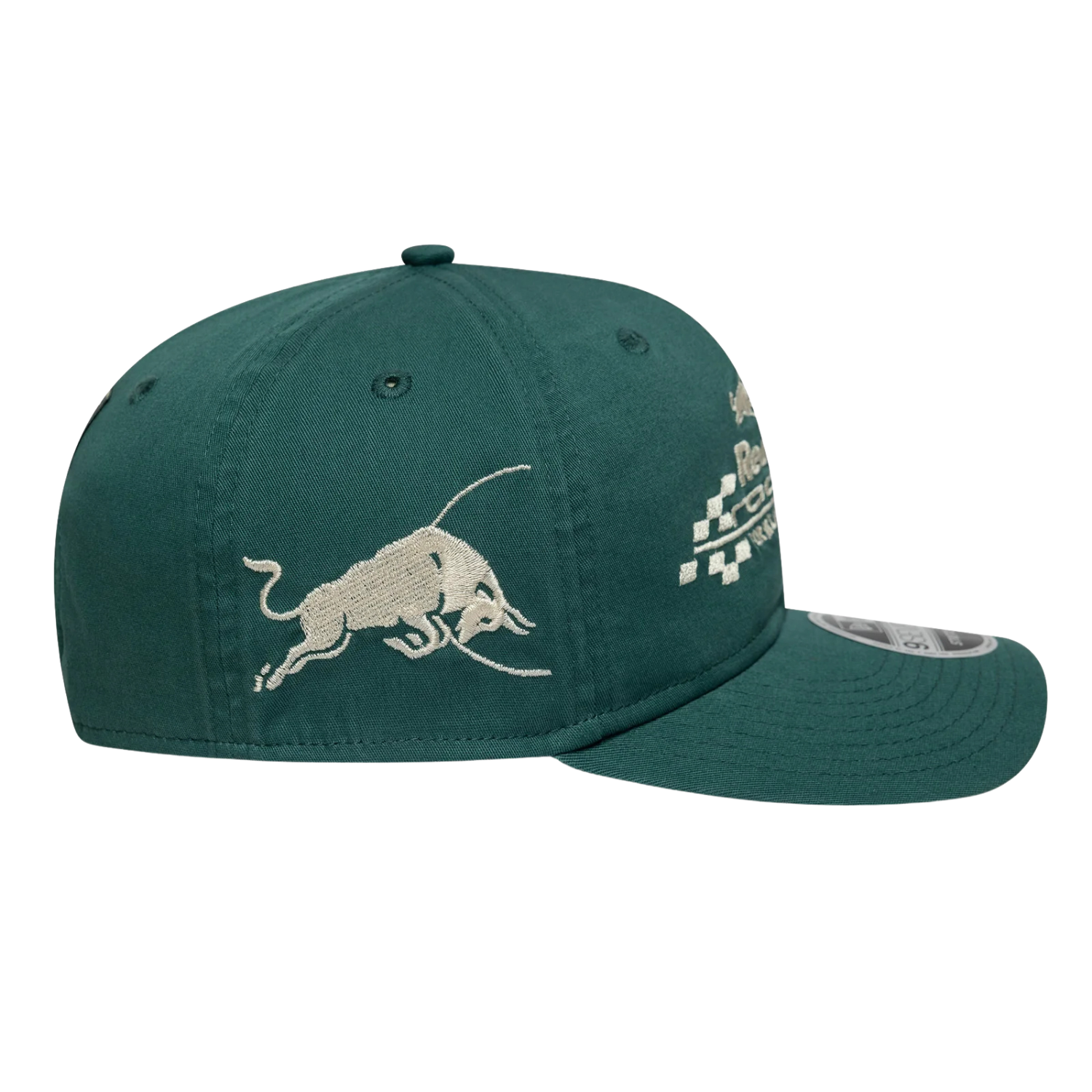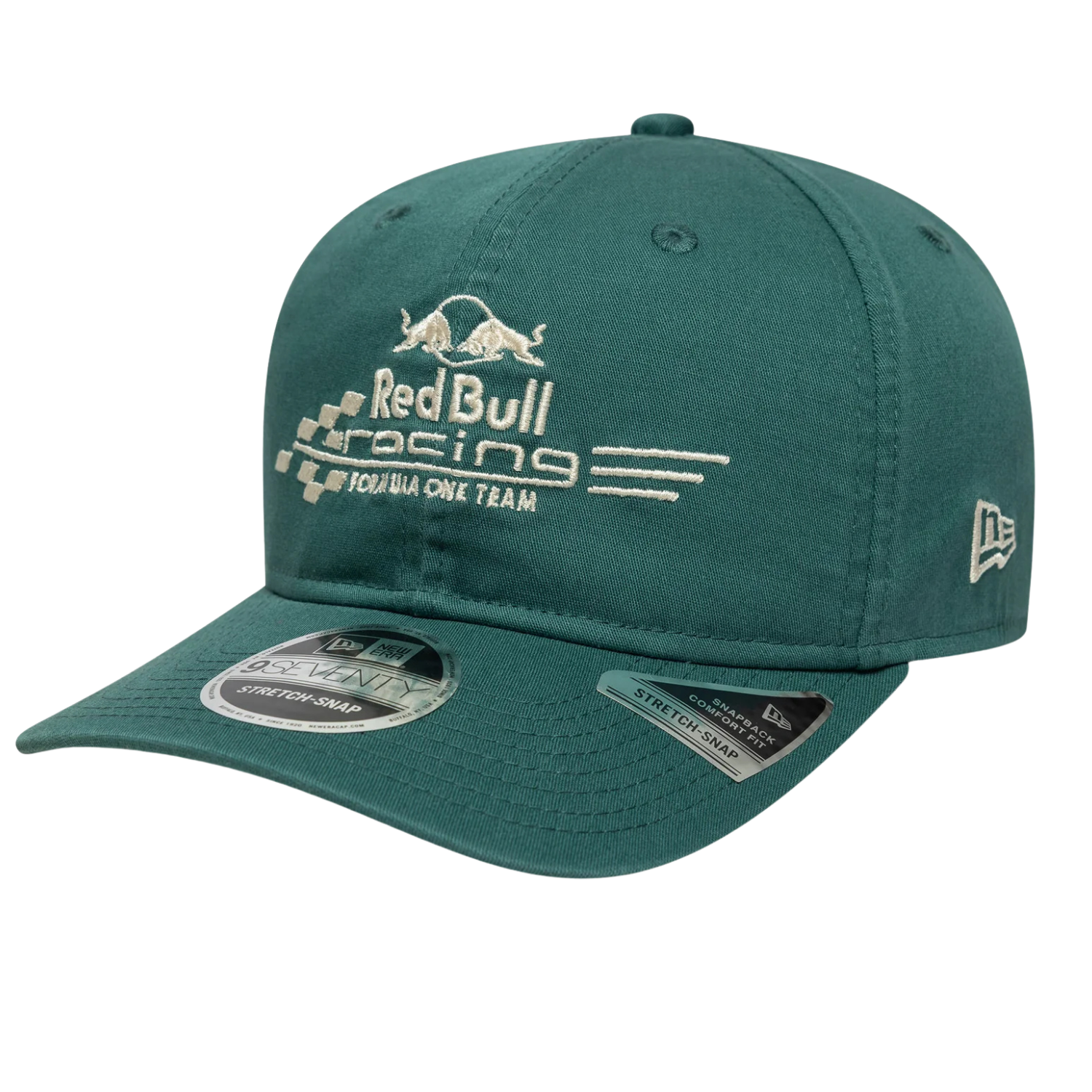 ORACLE Red Bull RACING Washed dark green cap, Red Bull Racing team logo and inscription on the cap, adjustment strap on the back. Manufacturer New Era.