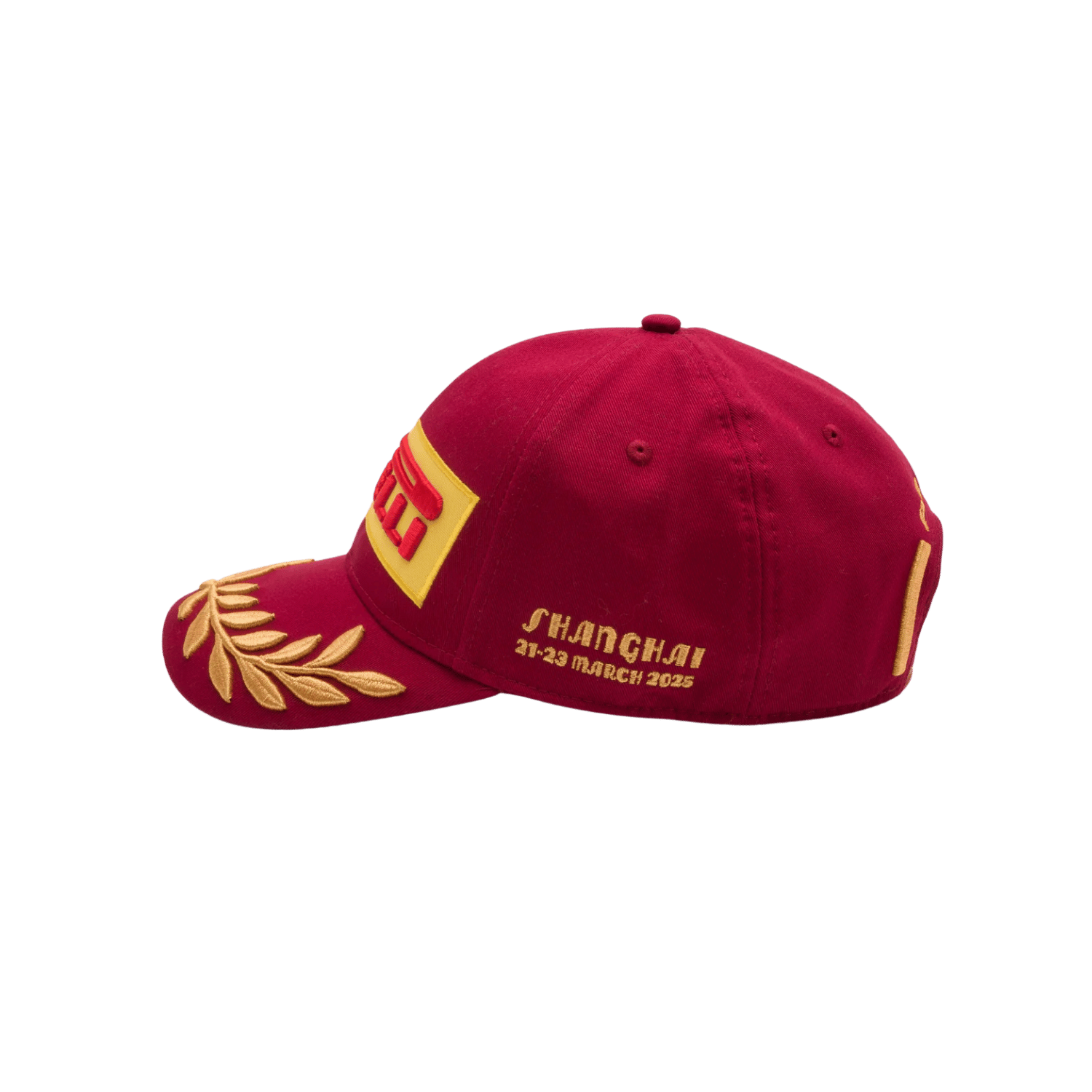 - On the left side there is a gold embroidered inscription of the event "SHANGHAI 21-23 MARCH 2025"