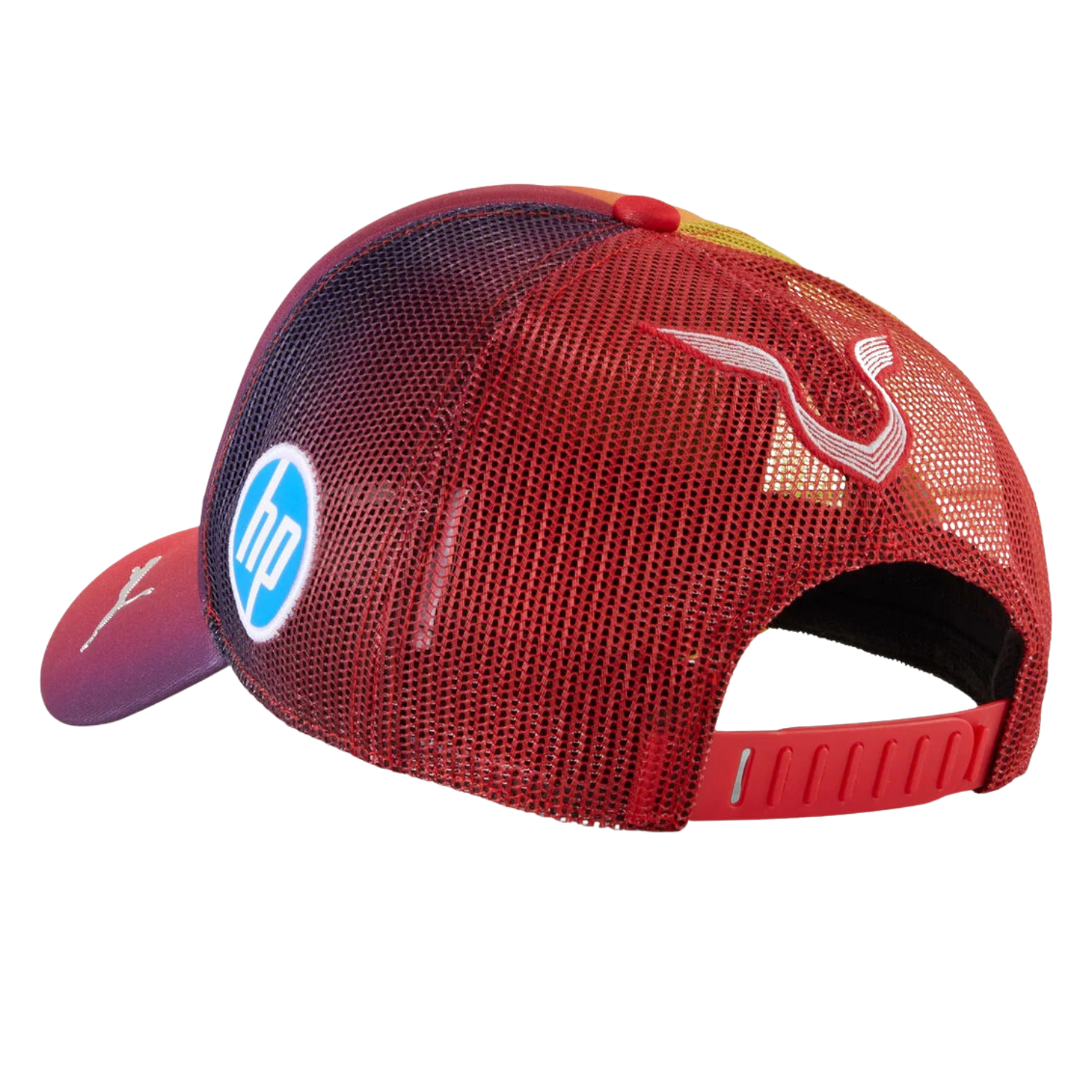 The special edition PUMA Scuderia Ferrari Lewis Hamilton British GP cap, launched for the 2025 Formula 1 Silverstone Grand Prix, is worn by Lewis throughout the race weekend. A special unique design with a bold print and driver number on the peak.