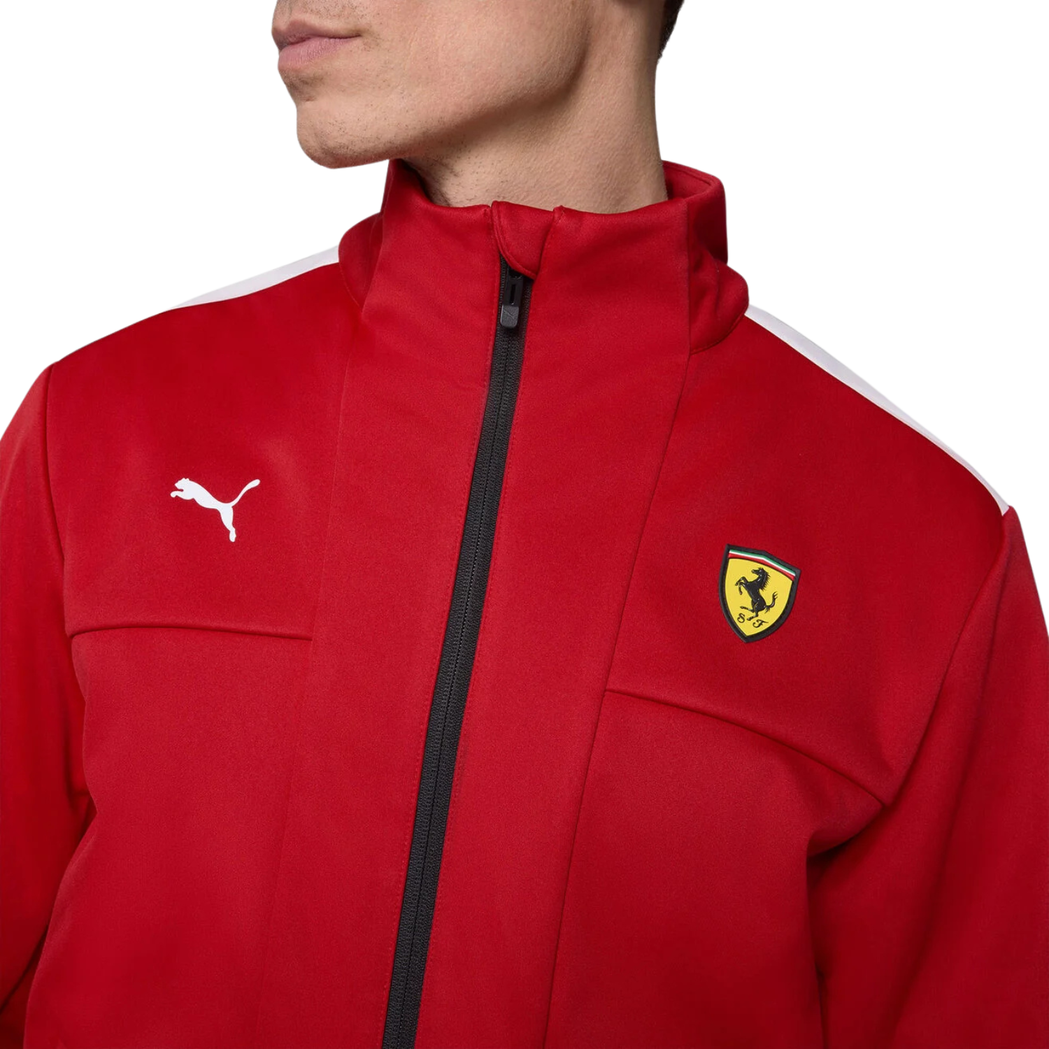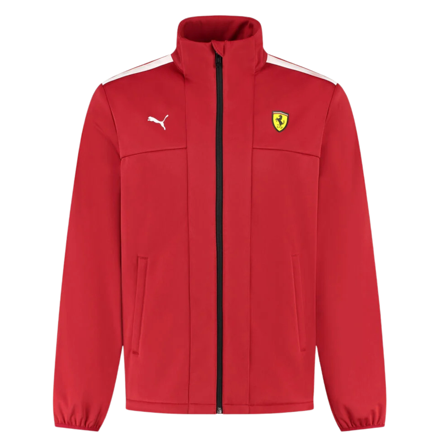 Prémiová softshellová bunda Ferrari, ktorá je súčasťou oficiálnej licencovanej kolekcie fanúšikovského oblečenia PUMA pre Scuderia Ferrari, má zips po celej dĺžke a predné vrecká s decentným nápisom Ferrari a PUMA na hrudi. Vetrovka v červenej farbe, materiál 100% polyester. Výrobca Puma.
