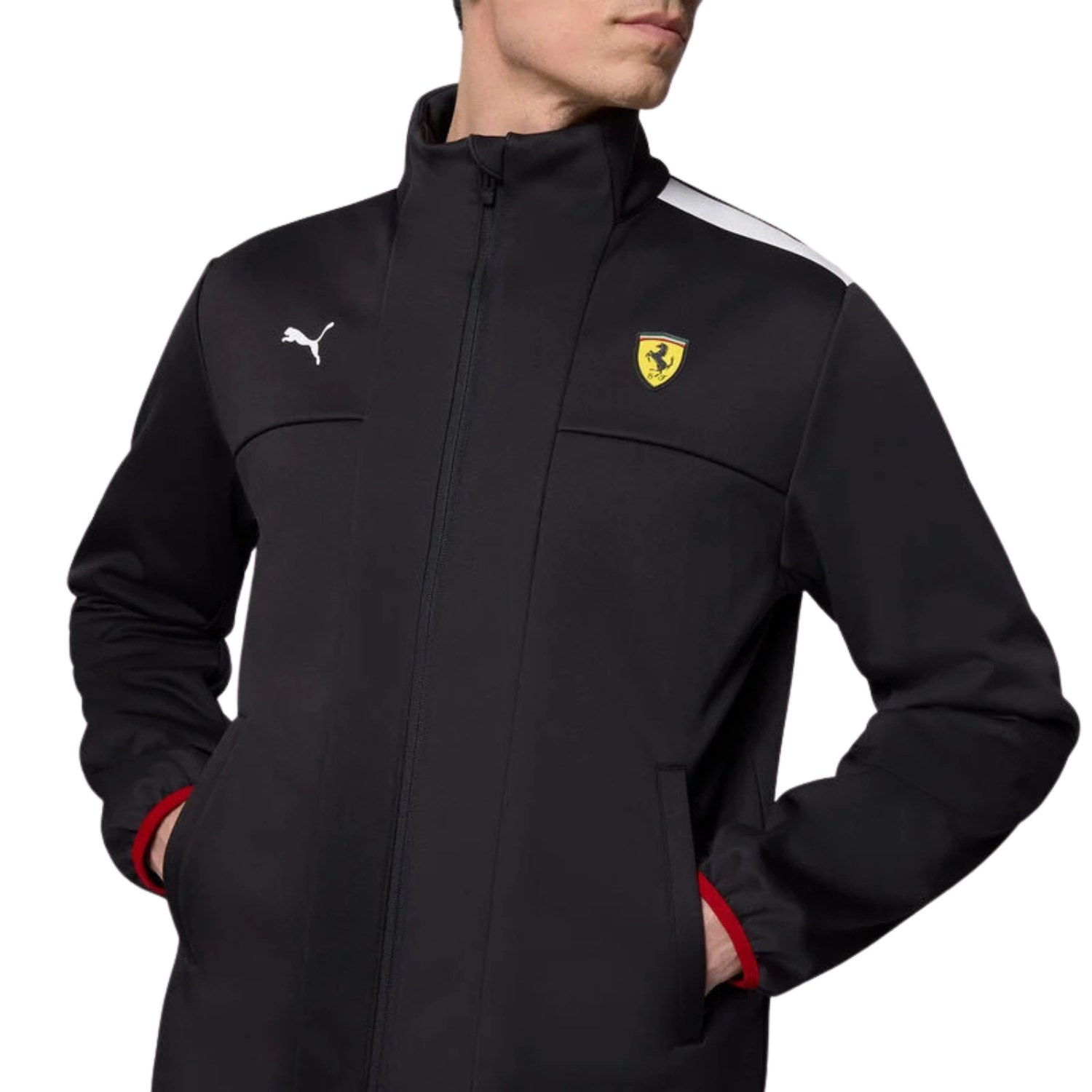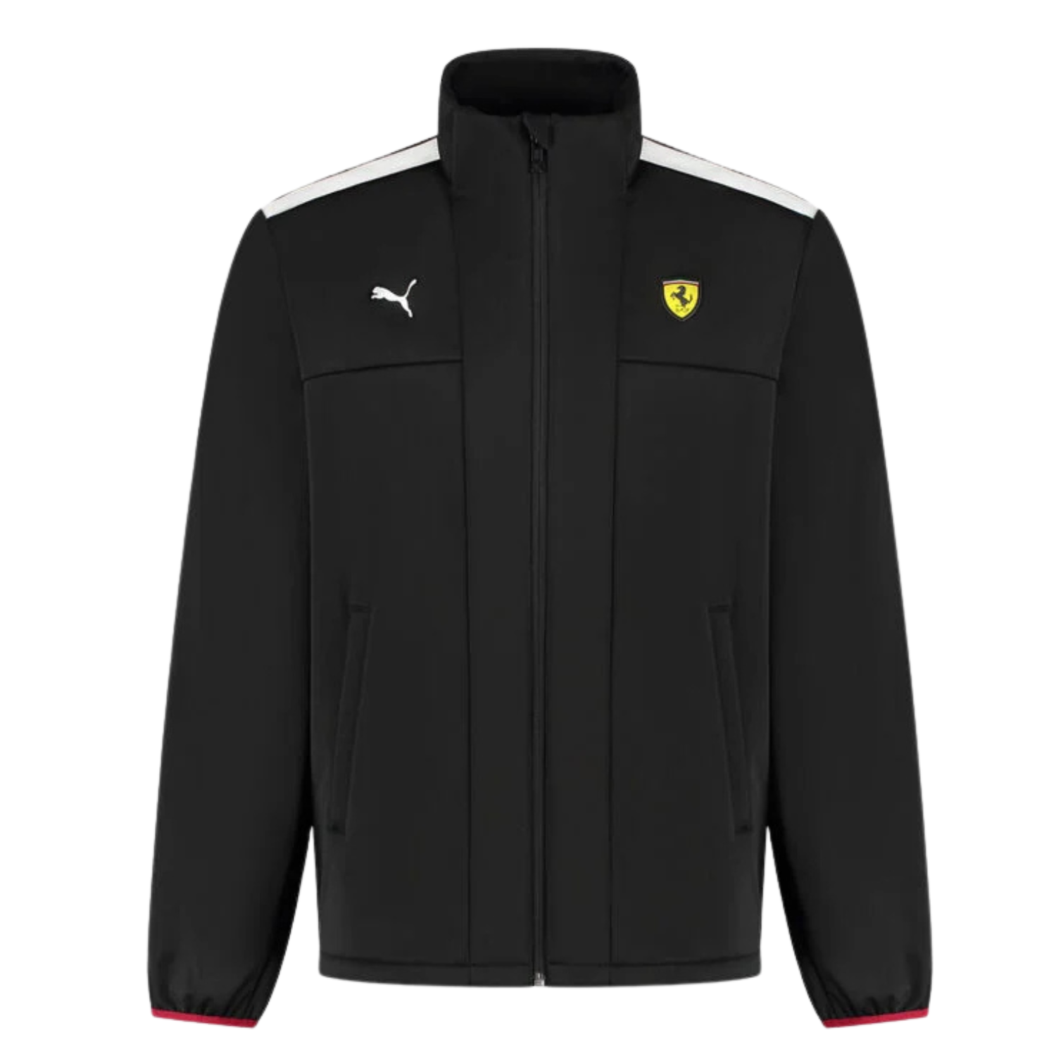 Prémiová softshellová bunda Ferrari, ktorá je súčasťou oficiálnej licencovanej kolekcie fanúšikovského oblečenia PUMA pre Scuderia Ferrari, má zips po celej dĺžke a predné vrecká s decentným nápisom Ferrari a PUMA na hrudi. Vetrovka v čiernej farbe, materiál 100% polyester. Výrobca Puma.