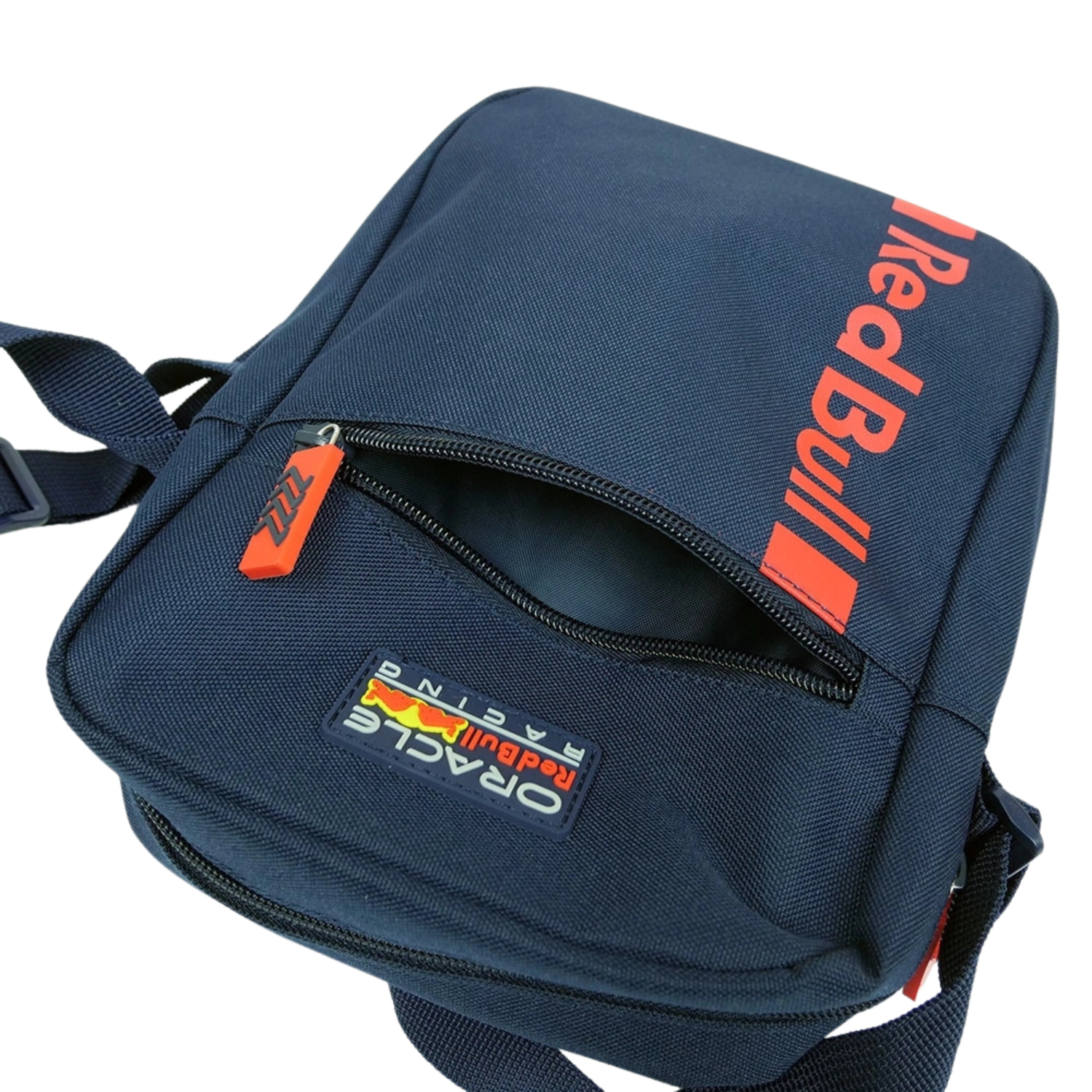The Red Bull Racing shoulder bag is the perfect accessory for all motorsport enthusiasts! The spacious main compartment with zipper provides plenty of space for everyday items such as a wallet, keys or smartphone. In addition, the smaller front zipper compartment offers quick access to important accessories and valuables, so you have everything under control - always and everywhere. The adjustable shoulder strap allows for a custom fit and optimal comfort, making the bag suitable for both children and adults and easy to carry on the shoulder.