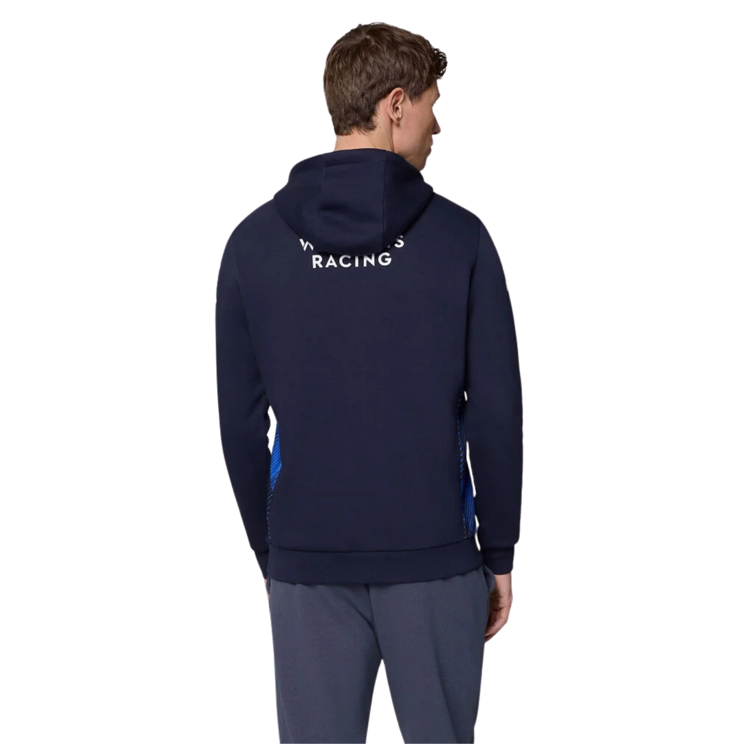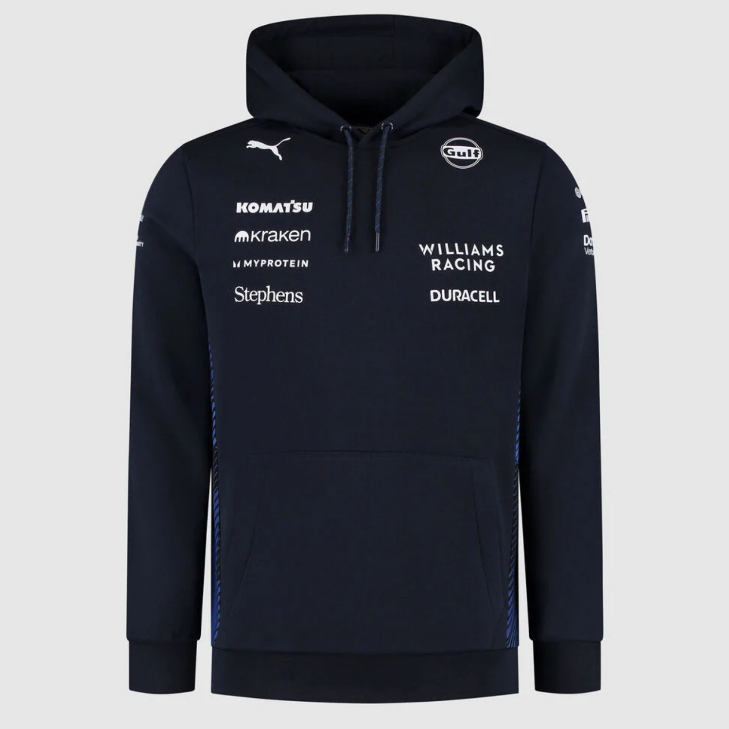 Williams Racing team hoodie in team colors, team logos and partner logos on the hoodie. Material 80% cotton, 20% polyester.