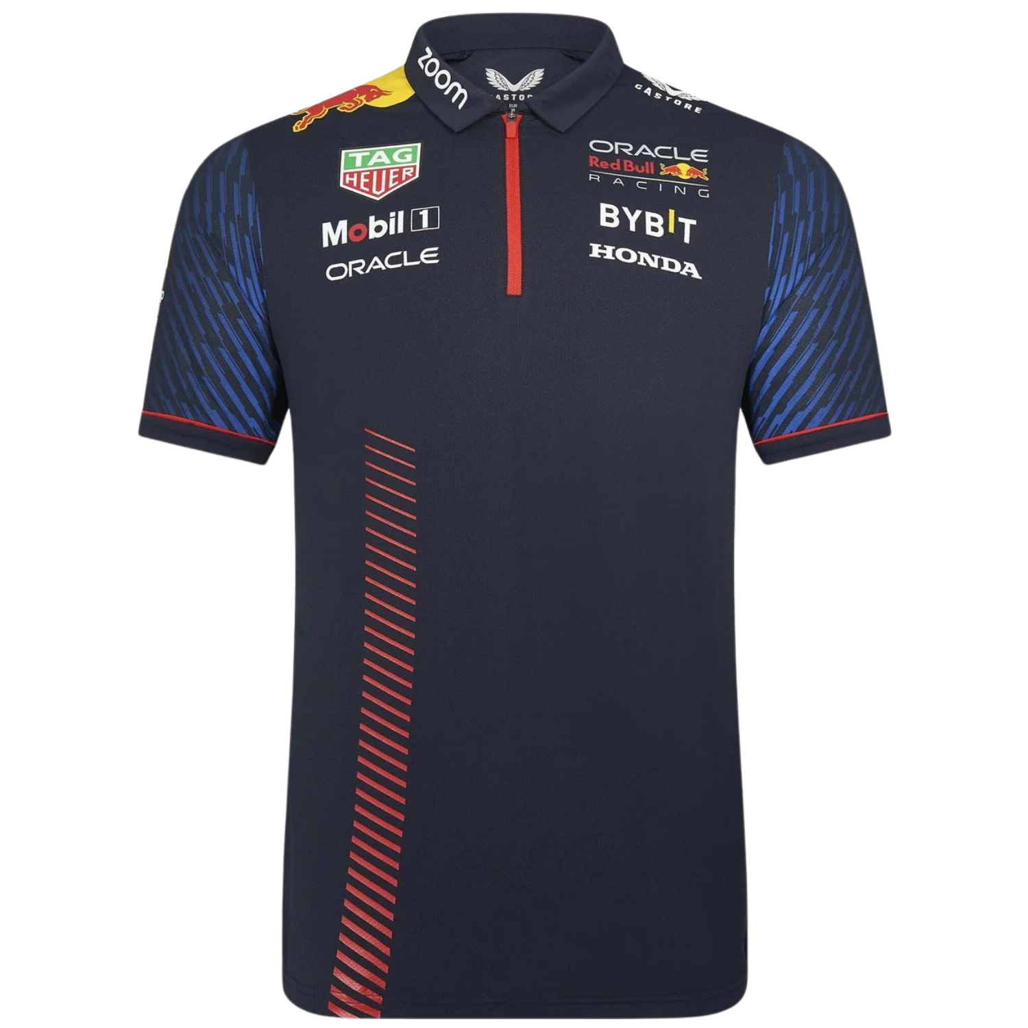 Oracle Red Bull Racing team polo shirt. RBR team sponsor logos on the polo shirt. Material 83% polyester 17%