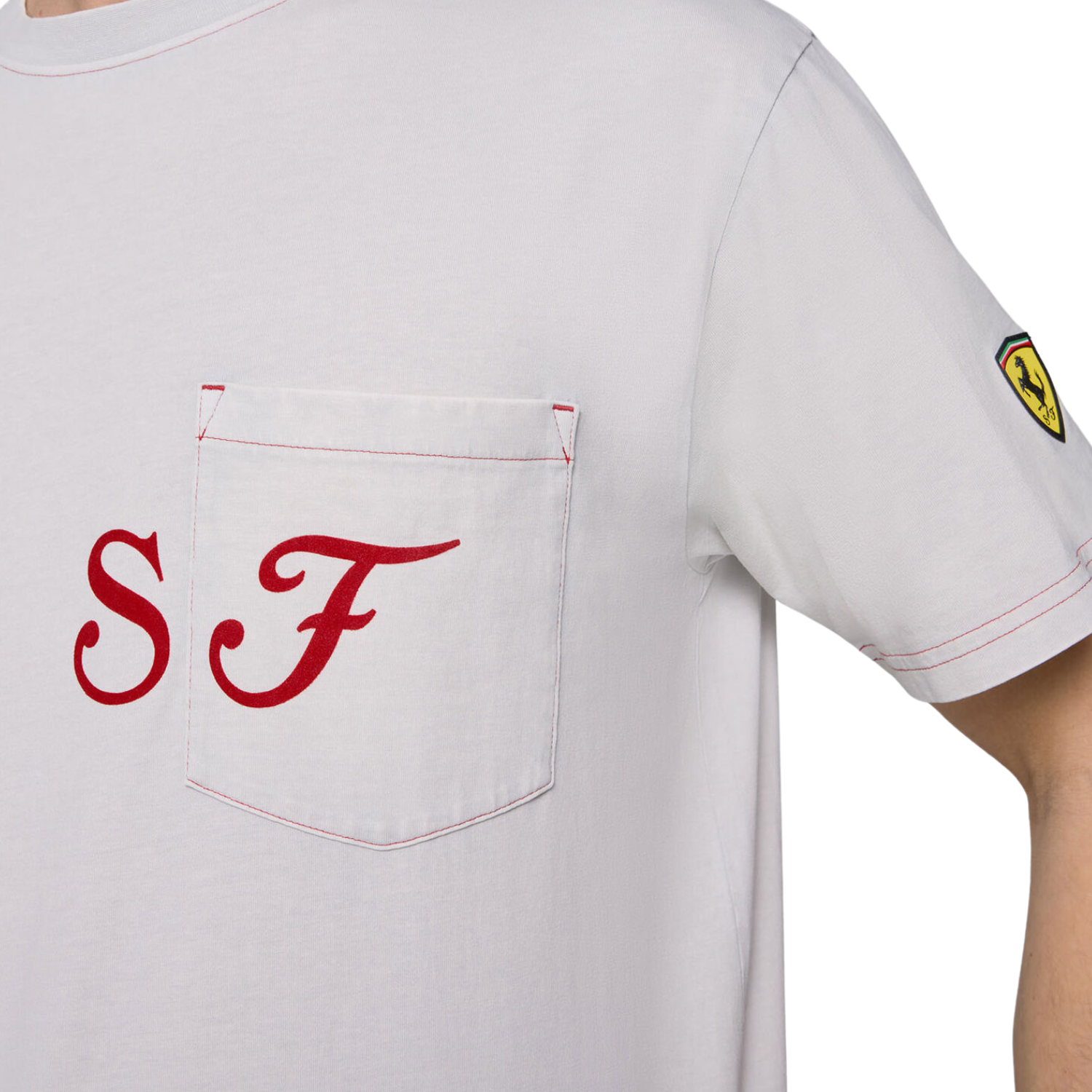 Part of PUMA's 2025 seasonal collection for Scuderia Ferrari, this crew neck t-shirt combines a flocked 'SF' print on the chest with a faded washed effect for a special Ferrari look. The sleeves feature classic Ferrari and PUMA logos.