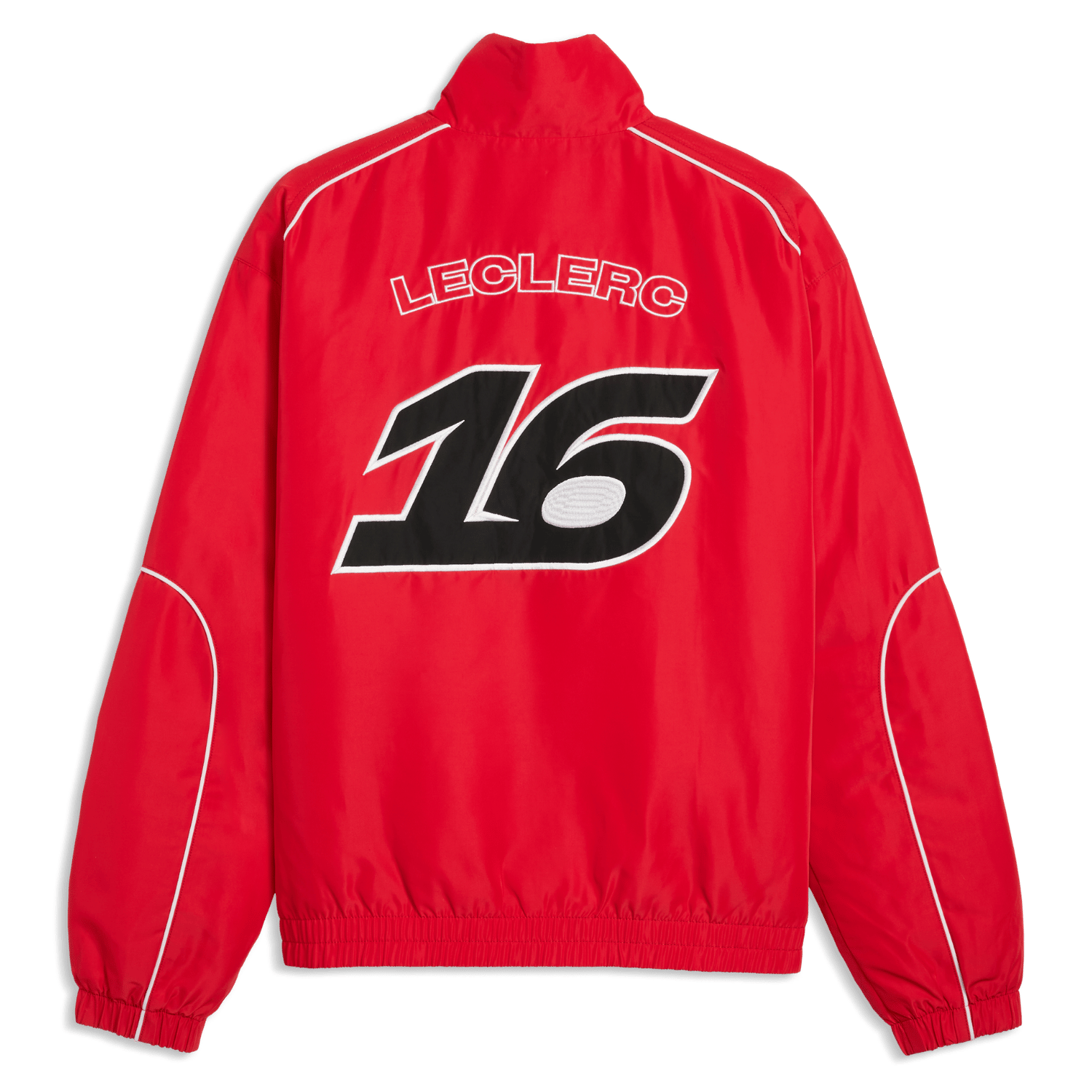 Csapatszéldzseki, a Scuderia Ferrari pilótája, Charles Leclerc. A széldzseki elején az SF csapatlogója, a 16-os szám, a Puma gyártói logója és Charles Leclerc aláírása található. A hátulján egy nagy 16-os szám és a Leclerc felirat található.